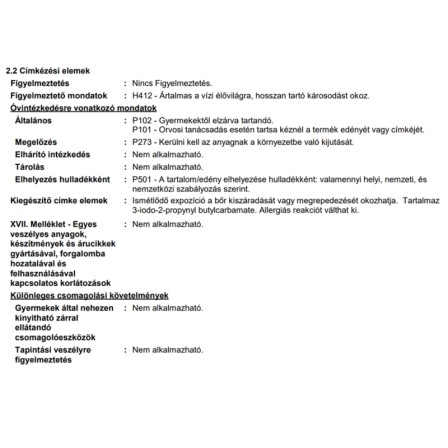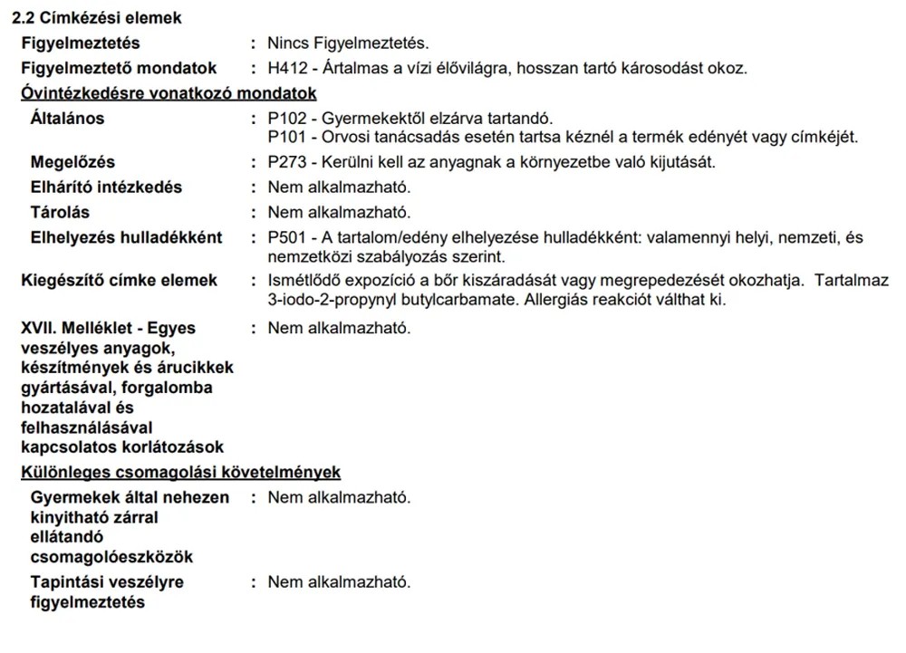 | Alk. gyermekjátékhoz (DIN EN 71-3 bevizsg.): | Gyermekjátékhoz nem alkalmas |