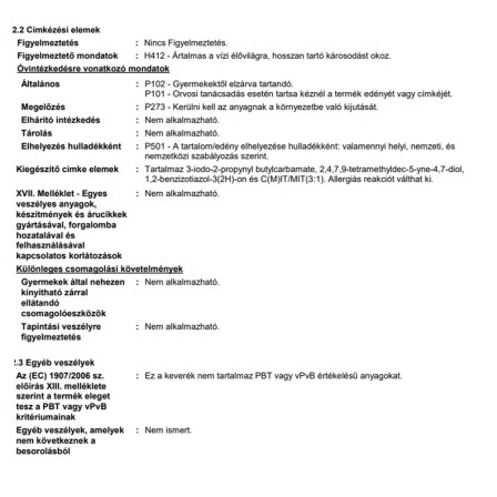 | Fogyasztás m²-enként, ml-ben: | 12 ml |