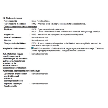 | Alk. gyermekjátékhoz (DIN EN 71-3 bevizsg.): | Gyermekjátékhoz nem alkalmas |