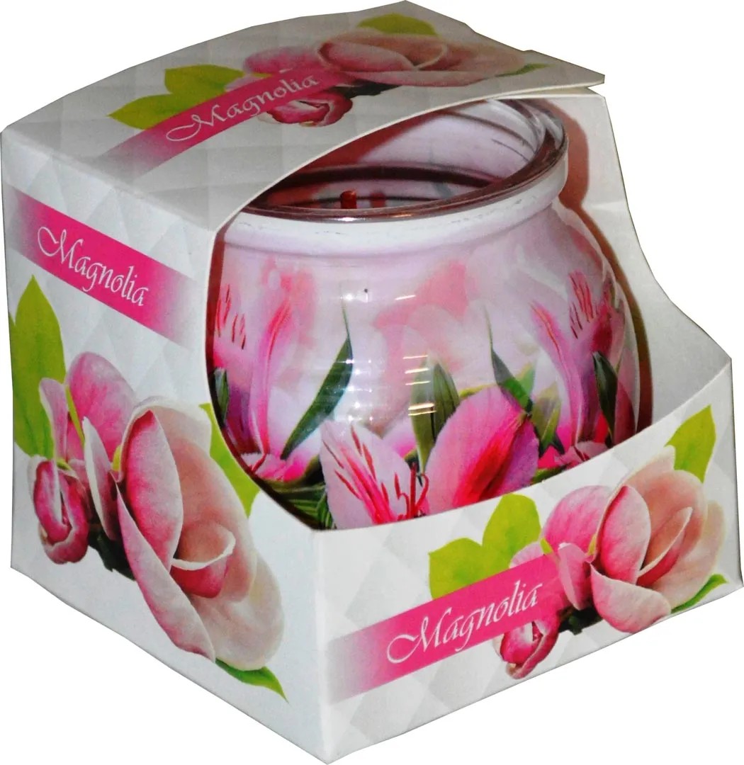 Üvegpoharas illatmécses, magnólia illattal, 70 mm x 75 mm méretű, kellemes illatot és meghitt hangulatot varázsol otthonába.