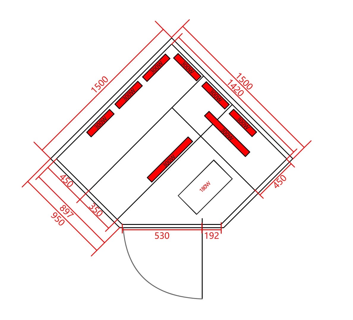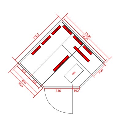 Deluxe infraszauna 3 - 4 személyes 150 cm x 150 cm
