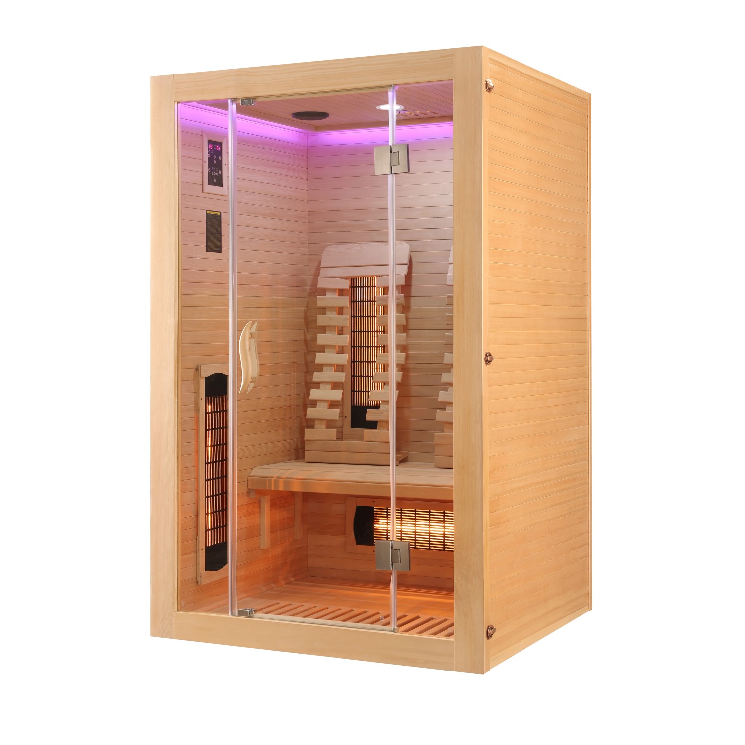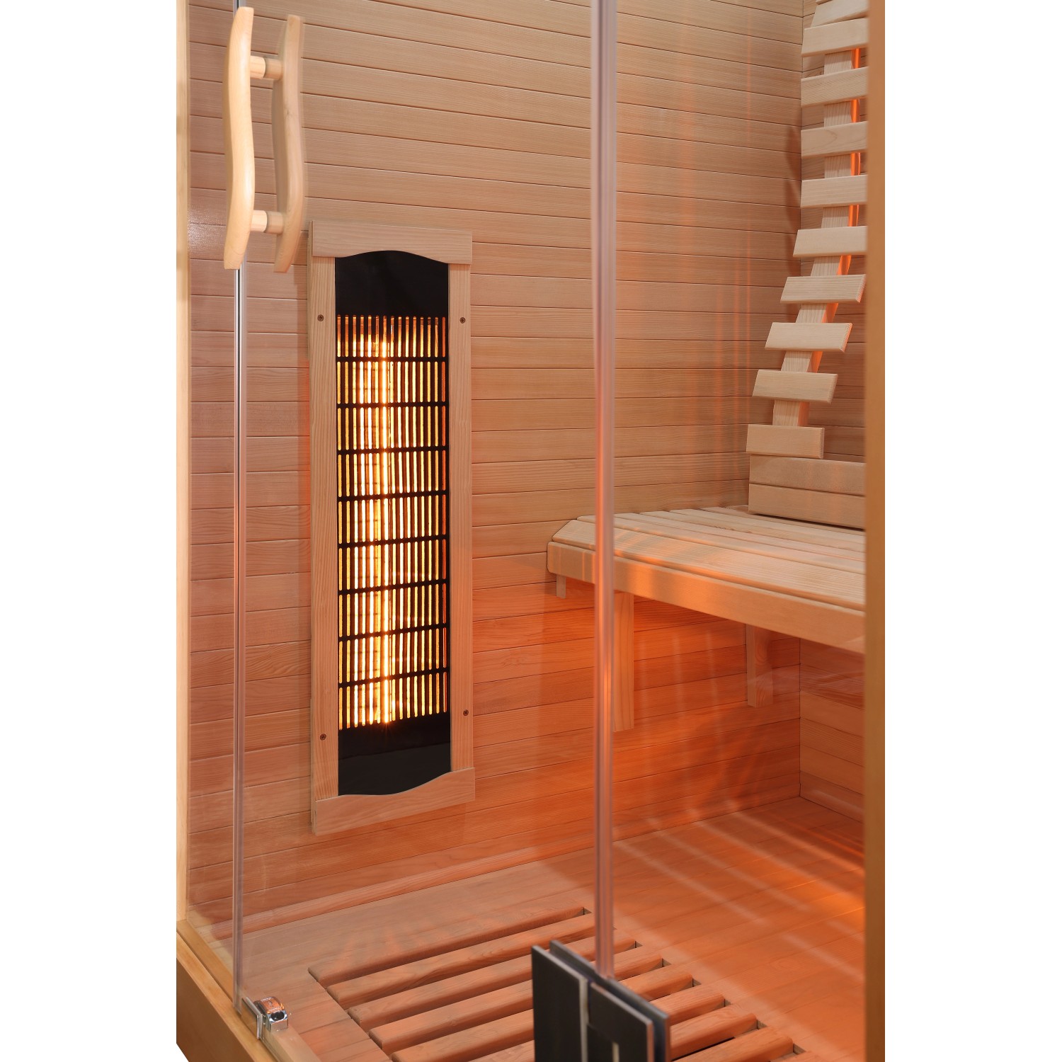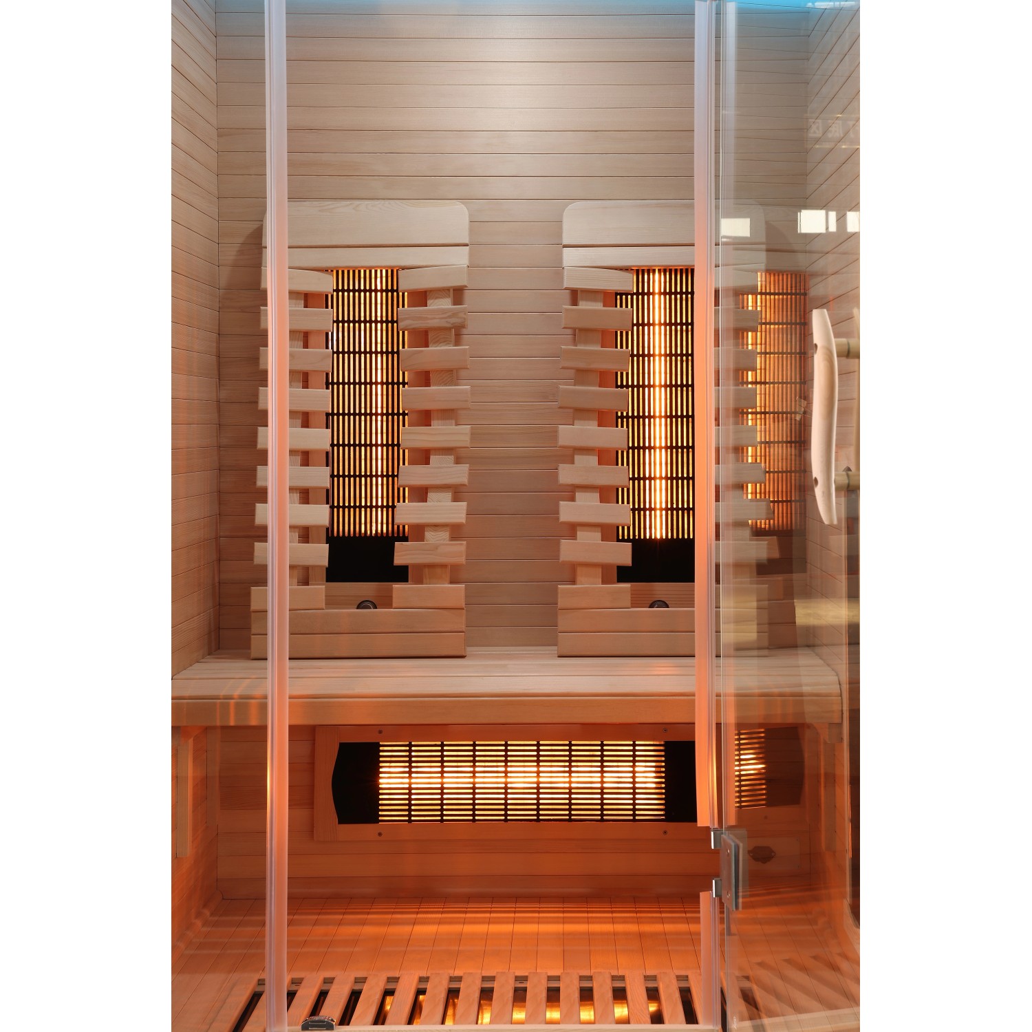 | Infraszauna előlap anyaga: | Hemlokfa, Biztonsági üveg |