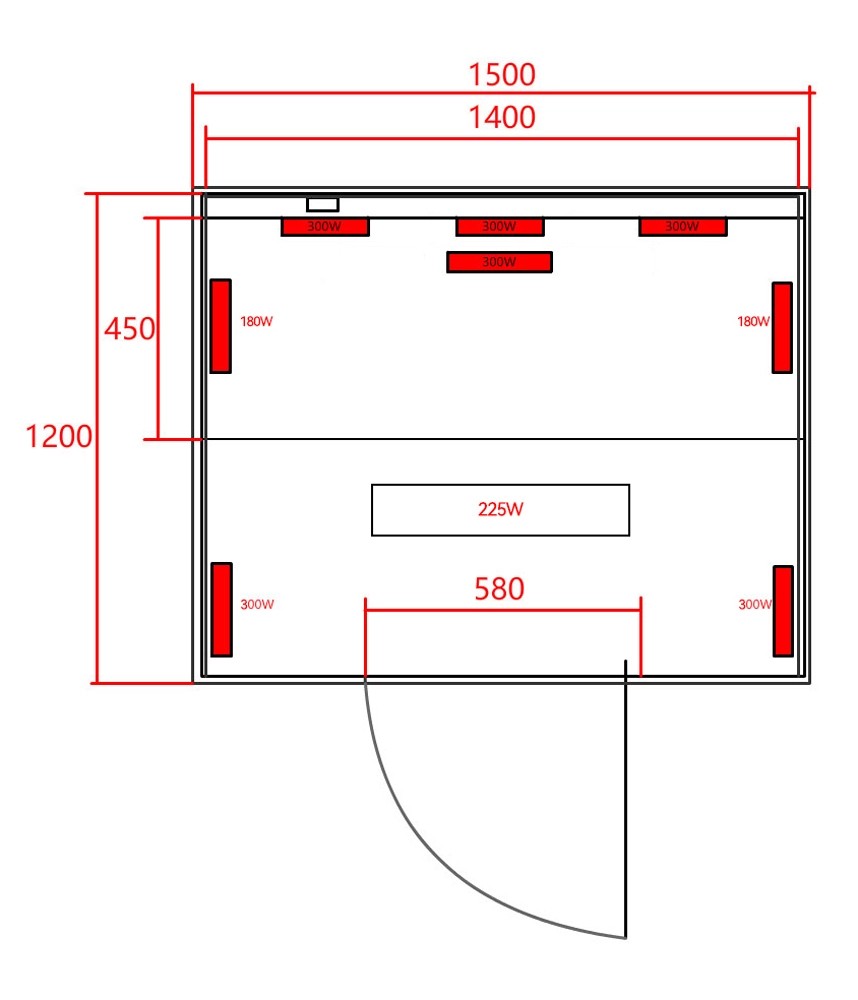 Open infraszauna 3 személyes 150 cm x 120 cm