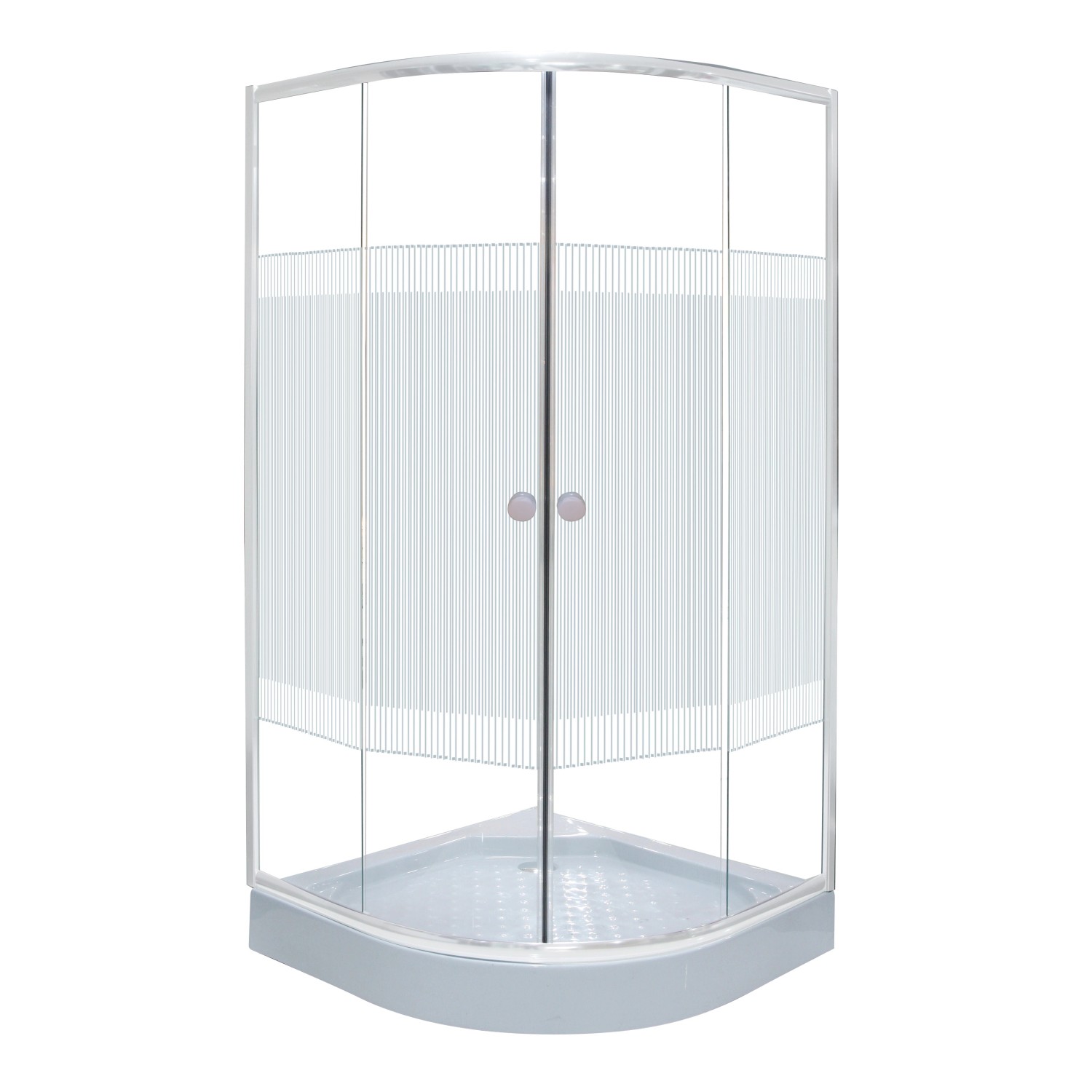 Íves sarokkabin 2 tolóajtóval 5 mm-es csíkos biztonsági üveggel 80 x 80 x 180 cm