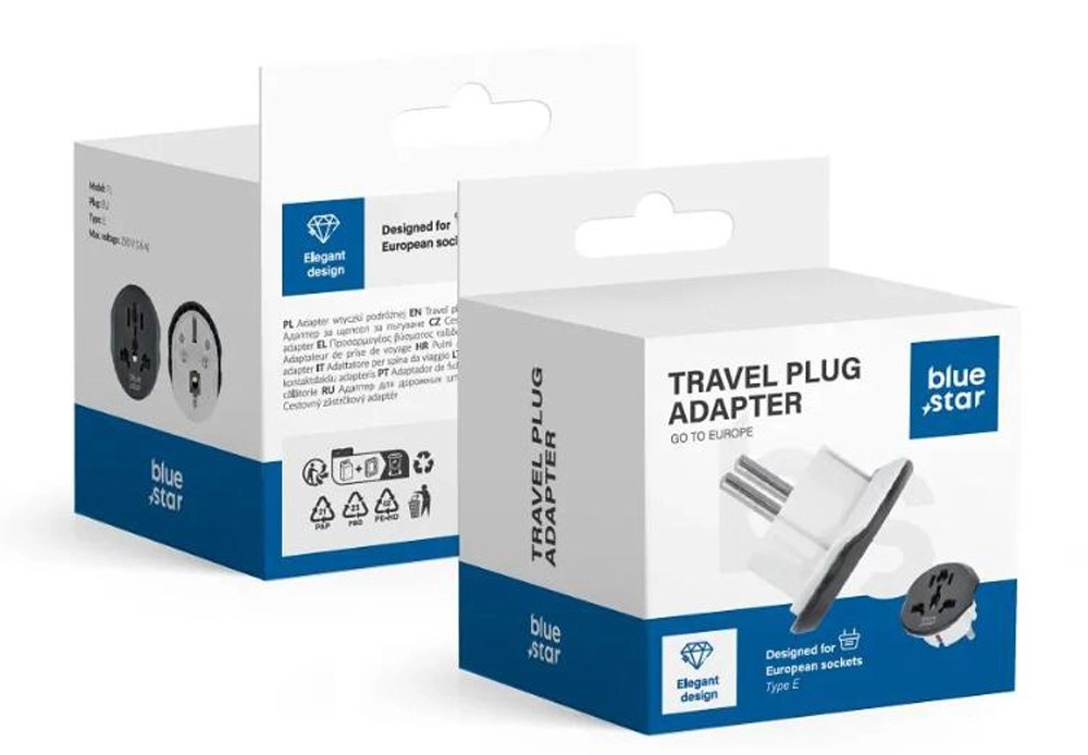 Bluestar utazó adapter GO TO Europe (Type E) 16A fehér