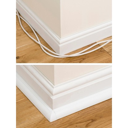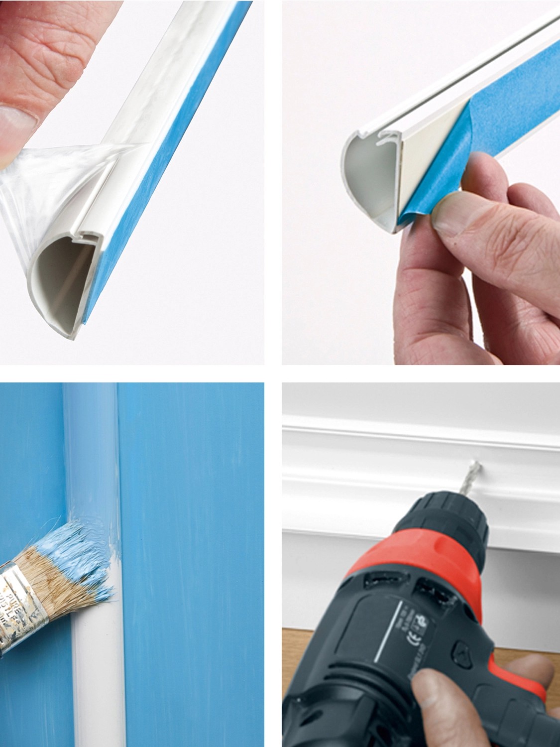 Nincs több összegabalyodott kábel és botlásveszély - sem az irodában, sem otthon! A rendkívül ütésálló, kemény PVC-ből készült, fehér D-Line kábelcsatorna, negyedkör alakú, keresztmetszete 22 mm x 22 mm, és 2 m hosszú. A negyedkör alakú profil áthidalja a padló és a szegélylécek közötti réseket, és megkönnyíti a kábelek lefektetését a helyiségekben. A hátoldalon található ragasztócsíknak köszönhetően könnyen felszerelhető és biztos tartást garantál. Szükség esetén még fúrással és csavarozással is rögzíthető. Továbbá igény szerint átfesthető vagy lakkozható, és könnyen levágható. Különleges - egy darabból készült - fedéllel, zsanérral és bepattintható zárással ellátott alakja révén a D-Line kábelcsatorna rendkívül könnyen kezelhető. A bepattintható zár könnyen nyitható és újra zárható, így a kábelek utólag is behelyezhetők vagy eltávolíthatók. A nagyobb biztonság érdekében nehezen éghető anyagból készült, és kizárólag beltéri használatra alkalmas. A nagyobb biztonság érdekében nehezen éghető anyagból készült, és kizárólag beltéri használatra alkalmas. A praktikus kiegészítők, mint az összekötőelemek, záródugók stb. szintén nagyon egyszerűen felszerelhetők. Rögzítse a toldatokat, szerelje fel a kábelcsatornát, és kész!