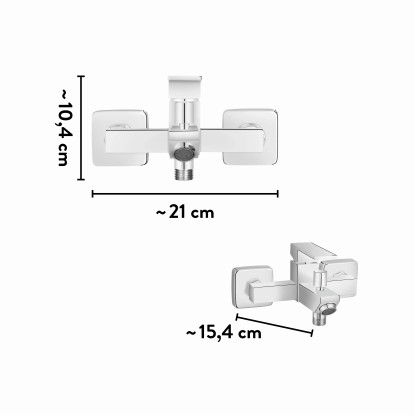 A krómozott baliv WA-5140 kád csaptelep a kádfeltöltés és a zuhanyfunkció közötti átváltóval rendelkezik. Ez a szép formájú szerelvény a fürdőkád feletti falra történő felszerelésre alkalmas. Az áramlási mennyiség és a hőmérséklet kényelmesen, egy kézzel szabályozható.