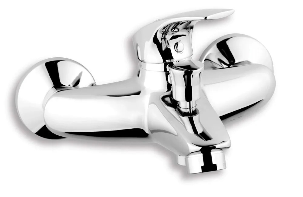 Falra szerelhető fürdőcsaptelep 150 mm-es osztással, tartozékok nélkül. A csaptelep helyes működését a Kerox kerámia patron biztosítja. Modern cseh csaptelep sorozat Metalia 57.
