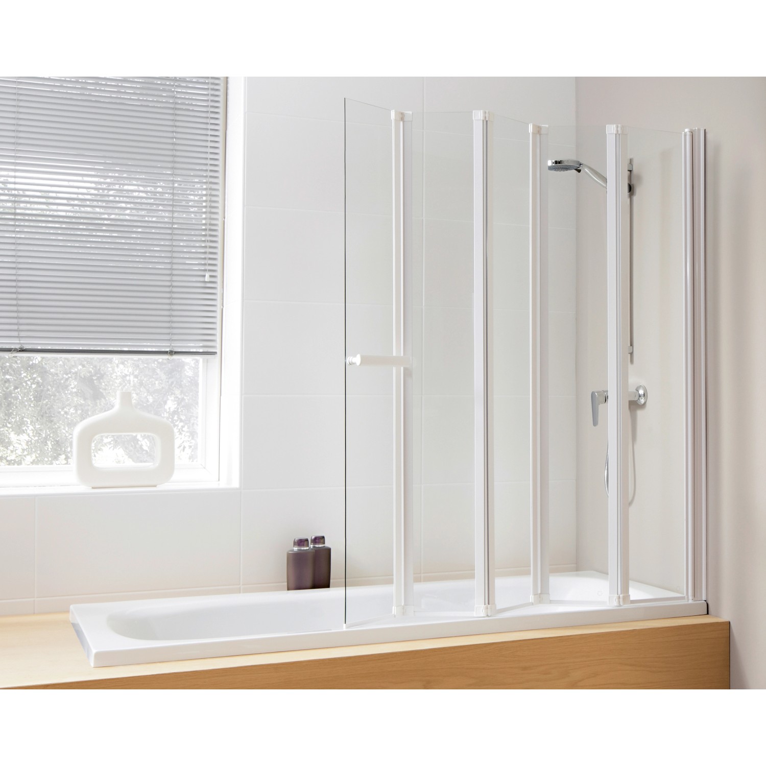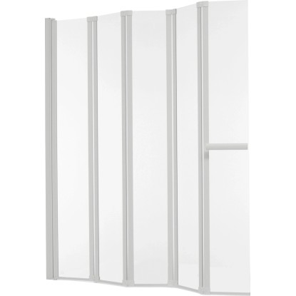 Az OBI Deco-Line Duna III ötrészes fürdőkádparavánt egyszerű design jellemzi. Az egyes elemek mérete 21,5 cm - 19,1 cm - 19,1 cm - 19,1 cm - 20,3 cm. Ez a változat 4 mm-es biztonsági üvegből készült, és optimális fröccsenés elleni védelmet nyújt. Az egyes keskeny elemek helytakarékosan és észrevétlenül összehajthatók. Az egyszerű fehér alumíniumprofilok gondoskodnak a szükséges stabilitásról. A fürdőkádparaván mindkét oldalra felszerelhető. A csomag részét képezik a rögzítőelemek is.