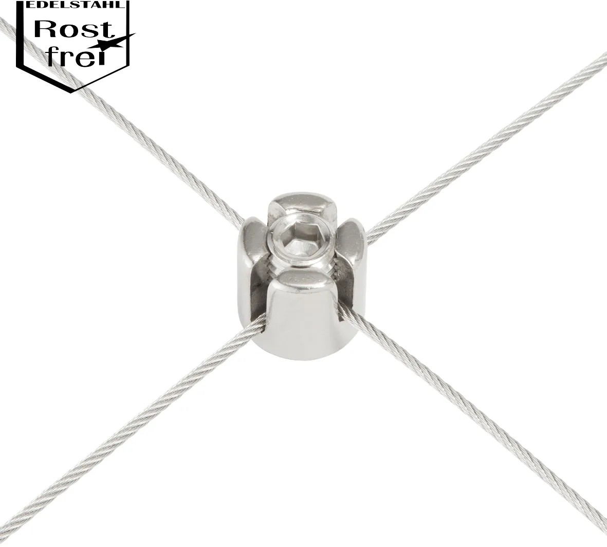 A Conacord keresztszorítója robusztus rozsdamentes acélból készült, és tökéletesen alkalmas 3 mm átmérőjű drótkötelekkel való használatra. Kiváló minőségű kivitelezésének köszönhetően megbízható és biztonságos csatlakozást biztosít, így ideális megoldás számos alkalmazáshoz.
