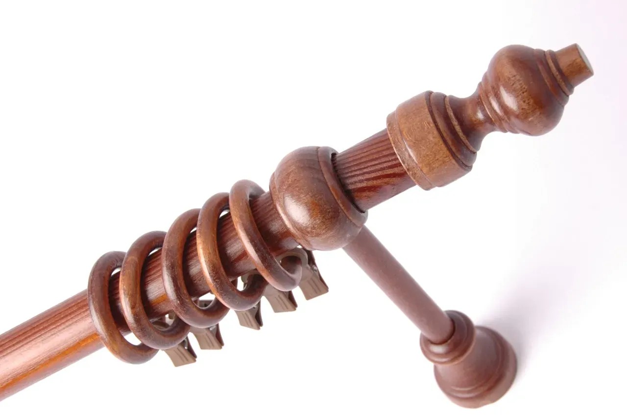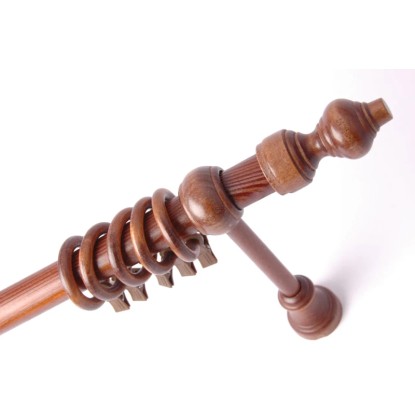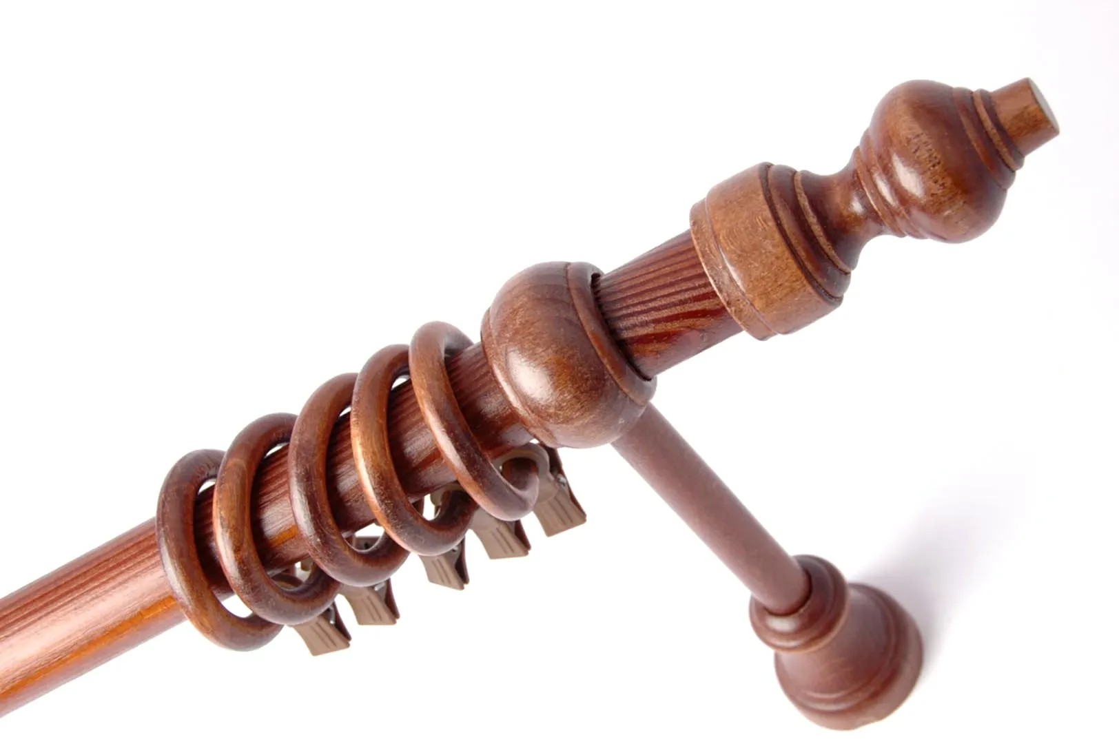 Szimplakrnis garnitúra szett. Fából készült 28 mm - es átmérőjű. A csomag tartalmazza a felszereléshez és a függöny rögzítéséhez szükséges kiegészítőket.