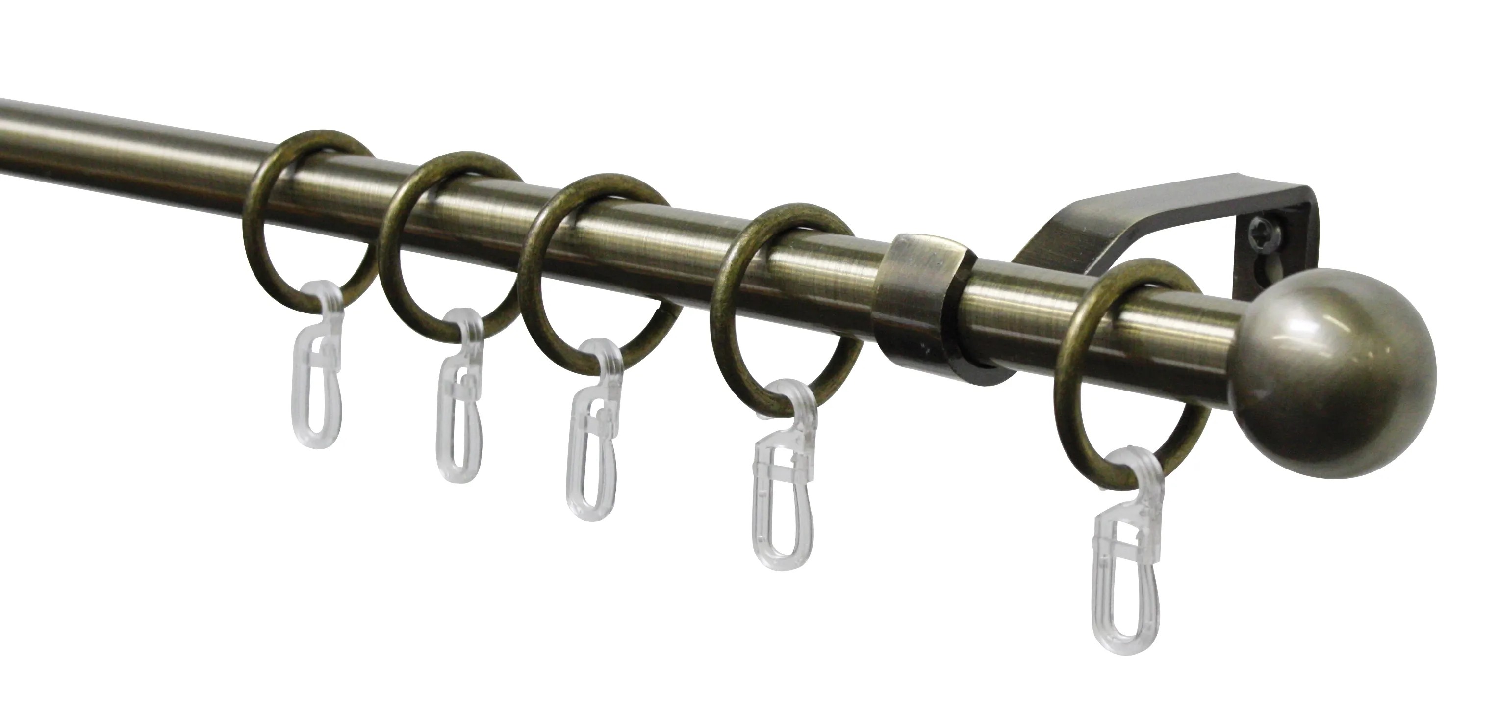 20 mm-es függönyrúdhoz való komplett fém karnisgarnitúra. A csomag tartalmazza a tartókat, karikákat, akasztókat, és a végfejeket.