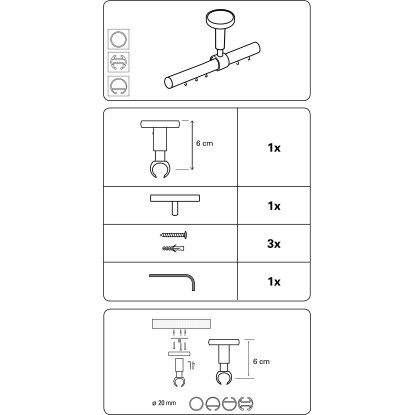 A Gardinia mennyezeti tartó robusztus fémből készült. Belső sínnel ellátott függönyrúddal vagy sima függönyrúddal ellátott dekorációkhoz alkalmas. A tartó fém rögzítőlemezzel rendelkezik. A rögzítőanyagot mellékeljük a gyors és egyszerű felszerelés érdekében.
