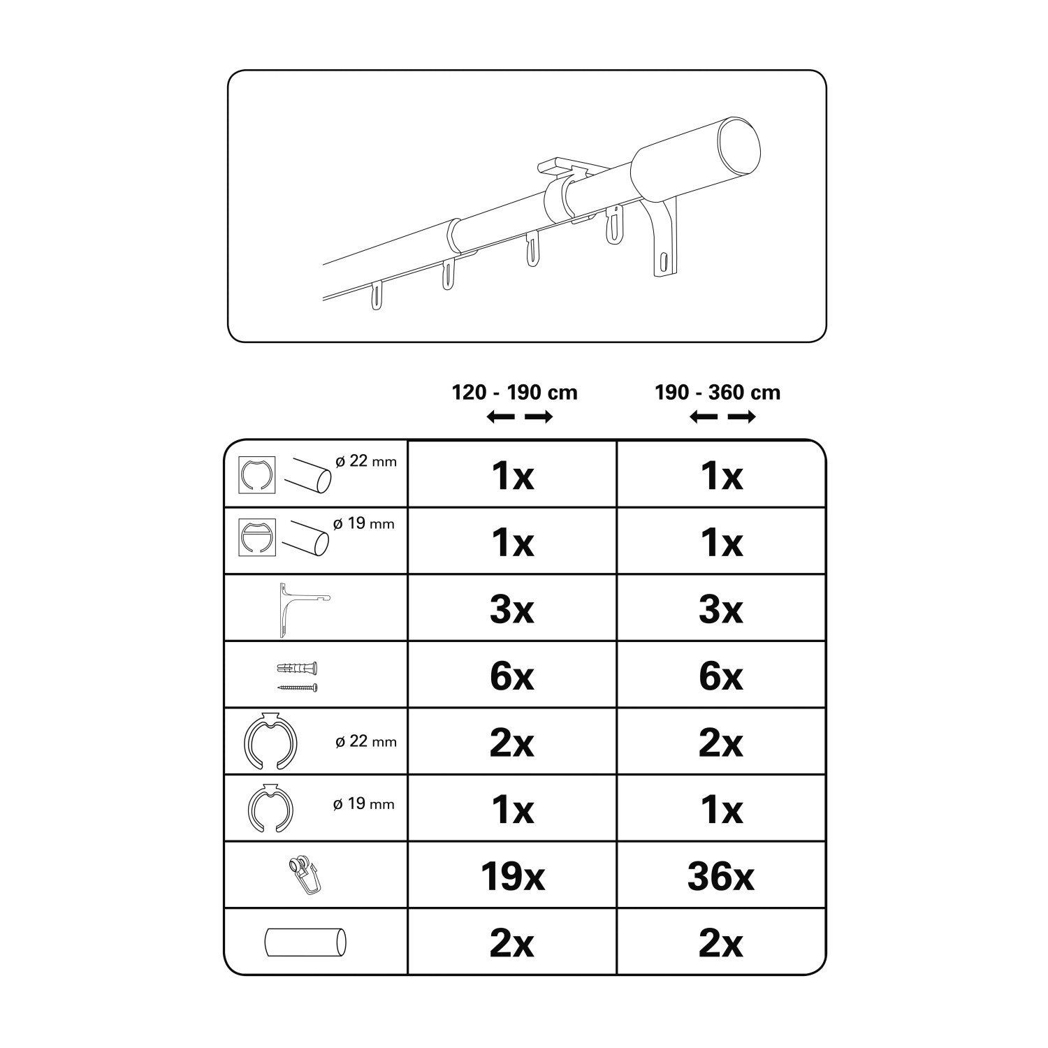 | Art der Gardinenstange: | Einzeln |