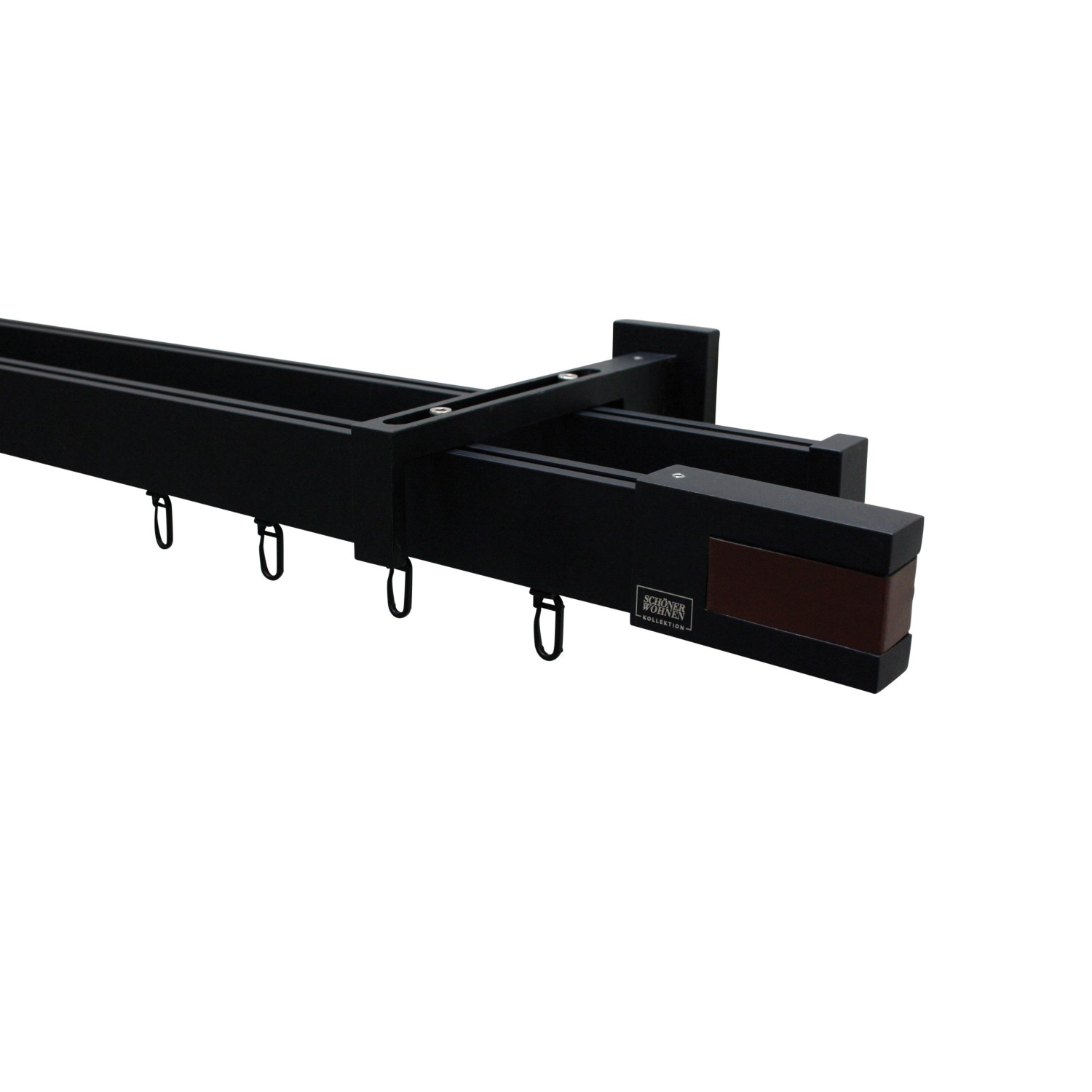 A Schöner Wohnen kollekció Matteo függönyrúdjának fali tartója egy matt fekete színű multifunkciós tartó, amely funkciói sokoldalúságának köszönheti a nevét. Ennek a tartónak kiemelkedő jellemzője, hogy akár 5 Matteo függönyrudat is rögzíthet egymás után, ami számos dekorációs lehetőséget biztosít. A függönyrudak kb. 5 cm és legfeljebb 14,5 cm közti távolságban szerelhetők fel.