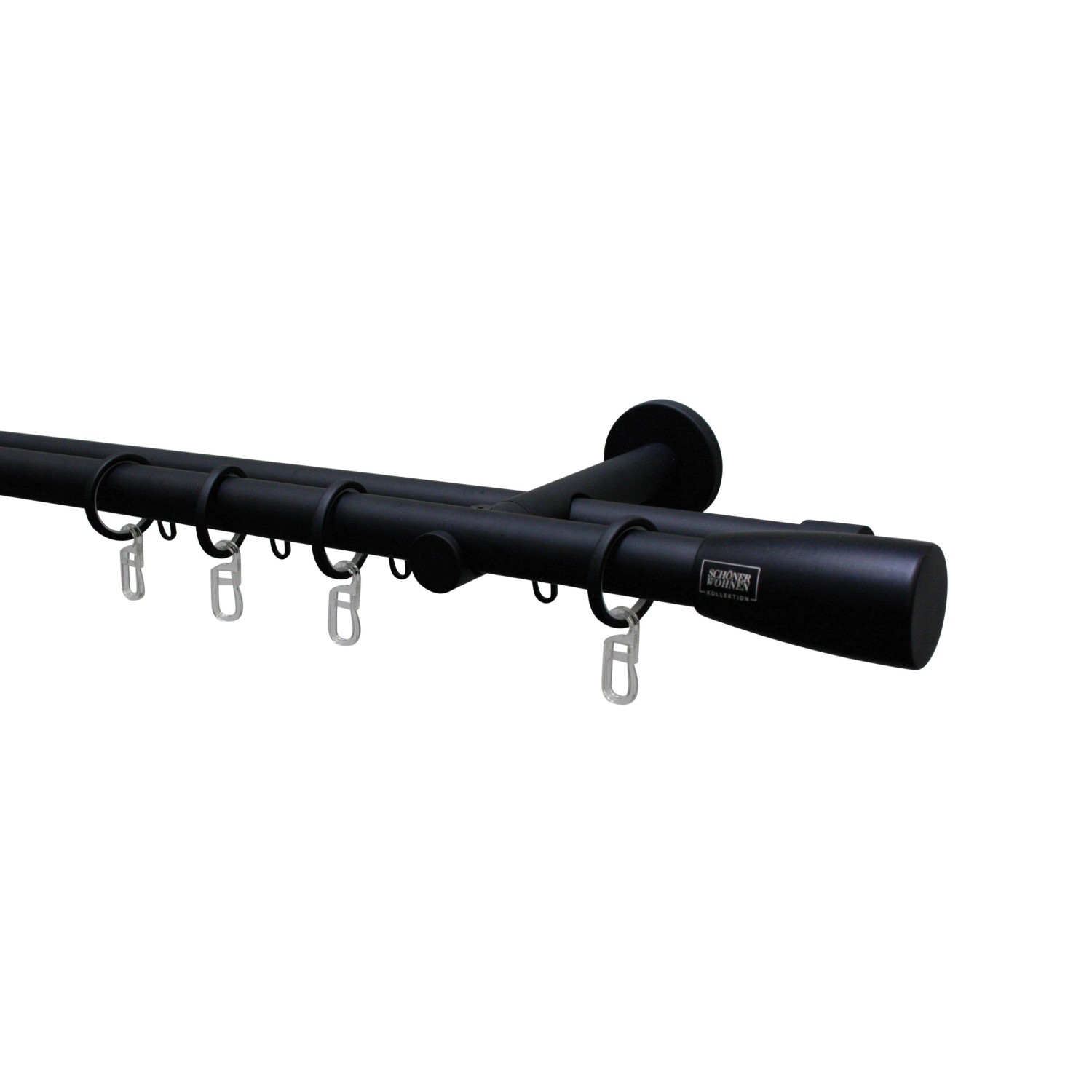 A Schöner Wohnen kollekció matt fekete, fém végzáró kúpja tökéletes lezárást biztosít a 20 mm átmérőjű Leon függönyrúdhoz.