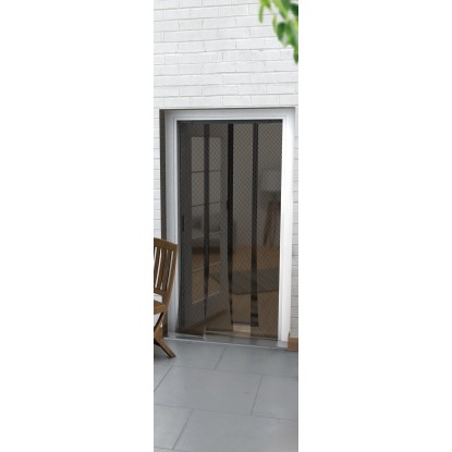 A szalagfüggöny megbízható védelmet nyújt a belső terek számára a szúnyogok, darazsak, legyek és más rovarok ellen. Ugyanakkor a fény és a levegő akadálytalanul bejut. A függöny antracit színű, masszív és tartós műanyag kerettel készült. Mérete 120 cm x 250 cm (sz x ma). A háló poliészterből készült, ezért strapabíró és könnyen ápolható. A tisztításhoz elegendő egy nedves ruhával letörölni.