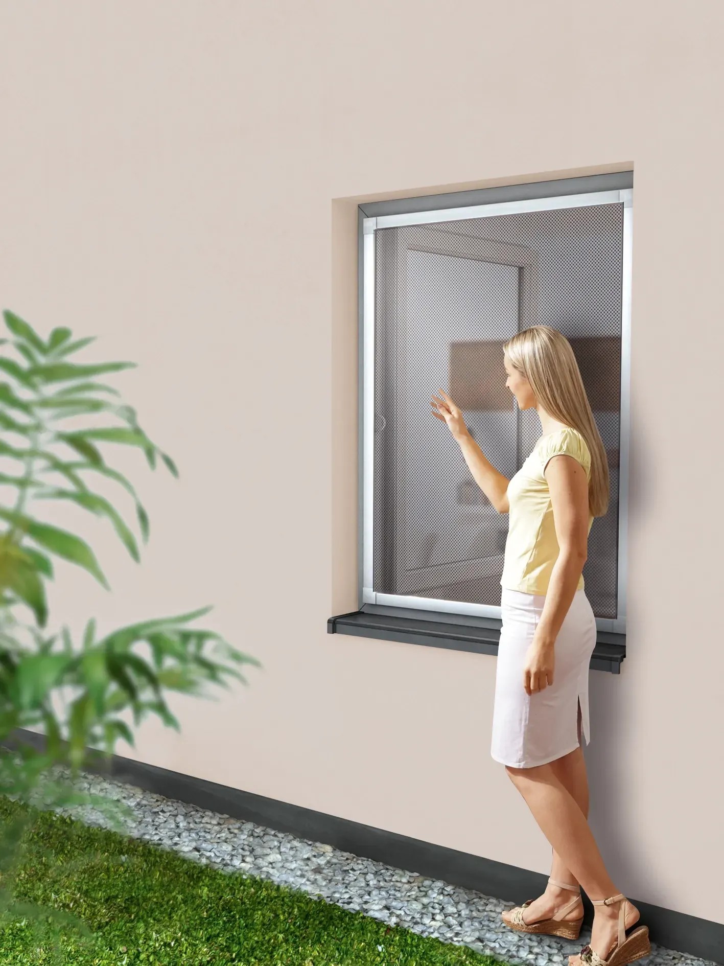 A szúnyoghálókeretet elsősorban rugalmasság jellemzi. A keretre rá van feszítve a háló, és egyszerűen behelyezhető az ablakba. A kívánt hosszra vágható. Ezenkívül levehető és újra használható. A szerelés beszorítással történik.