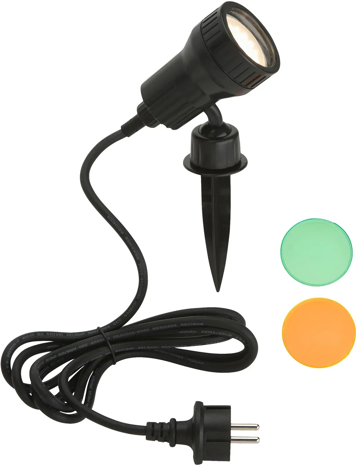 A modern Terra kültéri LED-es lámpa kiváló minőségű műanyagból készült, és gondoskodik a kert optimális megvilágításáról a bejárat vagy a kerti tó környékén. A lámpát egy narancs és egy zöld színű lencsével, egy 2 m hosszú dugó hálózati kábellel, egy földbe szúrható rúddal és egy fali tartóval is felszerelték. Emellett védett a bármilyen irányból fröccsenő víz ellen (IP44). A lámpát egy GU10 foglalatú, 3 wattos LED-es izzóval együtt szállítjuk.