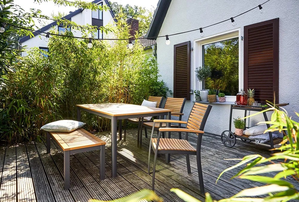 A téglalap alakú kerti asztal kiválóan alkalmas a sok vendég jelenlétében tartott kerti ünnepléshez vagy egy kellemes, közösen eltöltött étkezéshez.