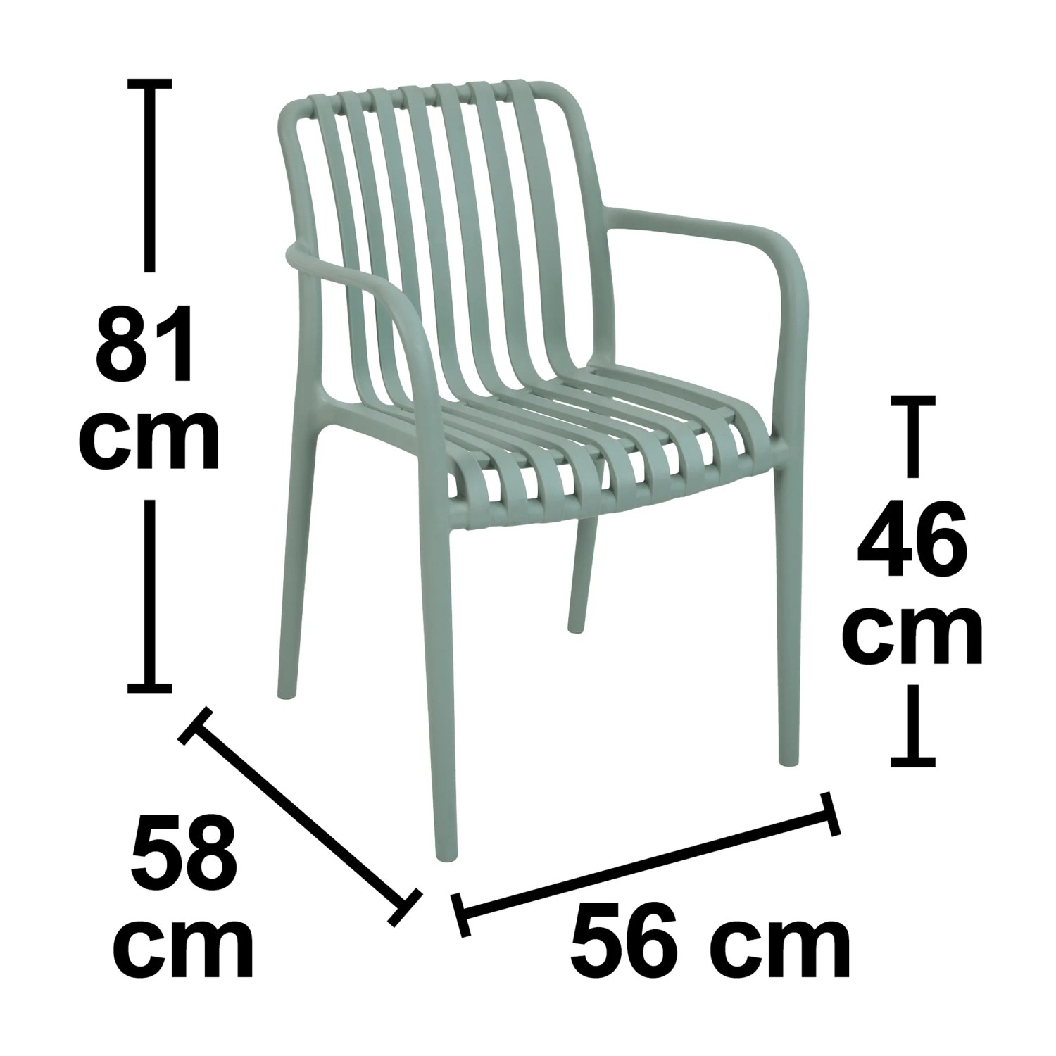 Élvezze ki a pihentető órákat a szabadban a Merrydale rakásolható székben. A szék modern és minimalista dizájnt és divatos színt kínál. A strapabíró műanyagból készült Merrydale szék nemcsak szép, hanem különösen könnyen tisztítható és időjárásálló is. 110 kg-ig terhelhető, és rakásolva helytakarékosan tárolható. A szék 56 cm-es ülésszélessége, 58 cm-es ülésmélysége és 81 cm-es teljes magassága optimális kényelmet biztosít. Lekerekített karfái kellemes pihenésre csábítanak, így ez lesz az új kedvenc helye a kertben vagy az erkélyen.