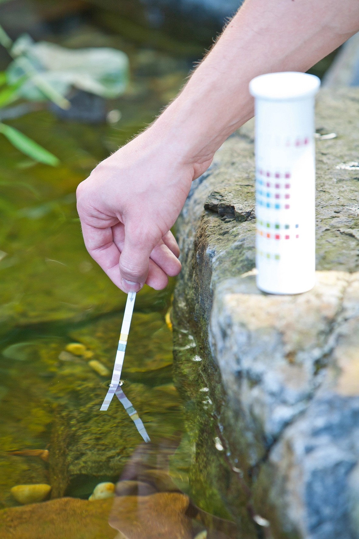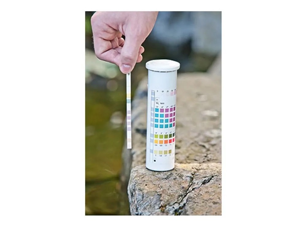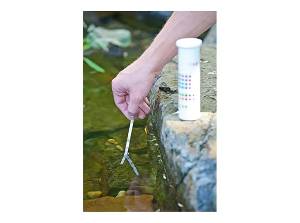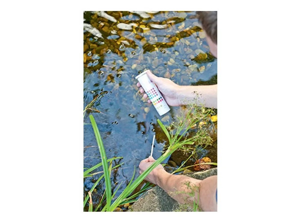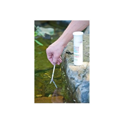 A Heissner 6in1 gyorsteszt készlet tesztcsíkokat tartalmaz, melyekkel a tó vizének 6 legfontosabb értéke (pH, GH, KH, CL, NO2, NO3) mindössze egy perc alatt ellenőrizhető. Az eredményekből kiderül, hogy van-e kiugró érték, és szükség van-e beavatkozásra.