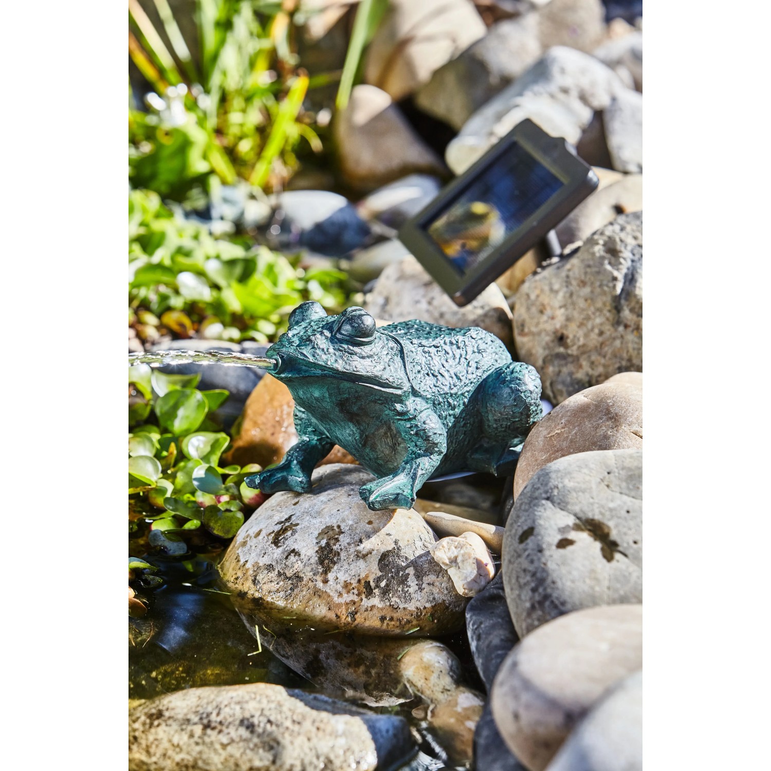 A Heissner napelemes tófigurakészlet friss oxigénnel látja el a kerti tavat. A tófigurából, napelemes tószivattyúból, napelemből és tömlőből álló készlet kizárólag a nap ingyenes energiájával működik. Pillanatok alatt üzembe helyezhető. A víz keringetéséből és ezáltal oxigén bejuttatásából a napsütéses napokon a tó minden lakója profitál, és így hozzájárulnak a víz tisztán tartásához.