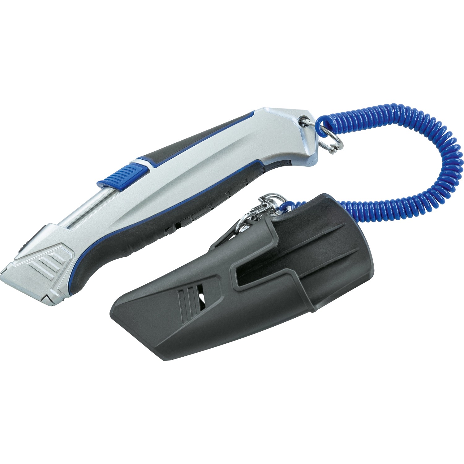 A szike automatikus megállító mechanizmussal rendelkezik, amellyel a penge egyszerűen és biztonságosan rögzíthető. A penge a szike fején található gomb megnyomásával cserélhető. A markolat Soft Touch betéttel van ellátva, amely a hosszabb munkavégzés közben is kényelmes használatot biztosít. A tárolás érdekében a csomag egy tartót is tartalmaz.