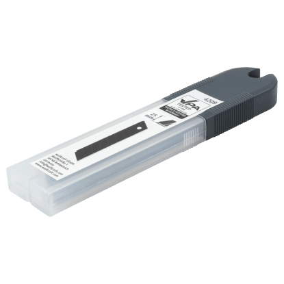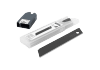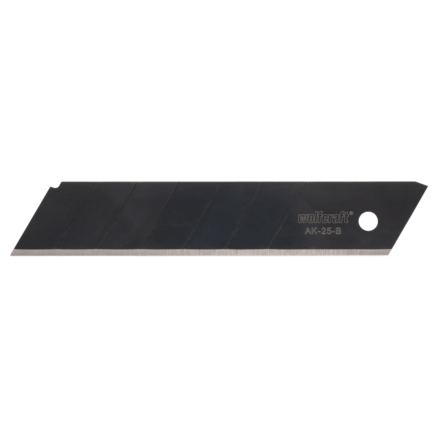 Az öt fekete, extra éles, kiváló minőségű szénacélból készült letörhető penge a VPA-tanúsítványnak megfelelő speciális csiszolásának köszönhetően 30 százalékkal jobb vágási teljesítményt nyújt, mint a hagyományos pengék. Kompatibilis a kereskedelemben kapható összes 25 mm-es letörhető pengéjű késsel kompatibilis. Nyolc letörhető szegmenssel rendelkezik. Az átlátszó műanyag dobozban biztonságosak tárolható. Alkalmas karton, szőnyeg, fólia, kátránypapír, parafa, fa, karton anyagok vágására.