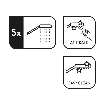Minden alkatrészt úgy terveztek, hogy a zuhanytartozék robusztus és tartós legyen. Mivel te is olyan fürdőszobát szeretnél, amely tartós! Szeretnél változatos zuhanyélményeket? Az öt különböző zuhanysugárnak köszönhetően a vízsugarat tetszés szerint állíthatod be. Annak érdekében, hogy a kézi zuhany tisztítása a lehető legegyszerűbb legyen, vízkőtelenítő fúvókák védik a vízkőlerakódás ellen. Egyszerű felszerelés: A 21 mm-es (G 1/2) szabványos csatlakozónak köszönhetően a kézi zuhany minden szabványos zuhanycsőhöz illeszkedik. Még egyszerűbb: Az összeszereléshez nincs szükség szerszámokra.