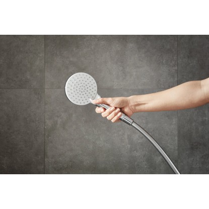 Crometta Vario zuhanyfej esetén különböző zuhanysugár-változatok állíthatók be. Az esőzuhany kellemes, nagyfelületű zuhanysugarat biztosít. Az erős és koncentrált IntenseRain-vízsugár is relaxáló hatású, amely optimálisan oldja a váll és a nyak területén megfeszült izmokat. A Crometta Vario kézi zuhany valamennyi zuhanysugara egyszerűen és tetszés szerint állítható be a szabályozó csúsztatásával.