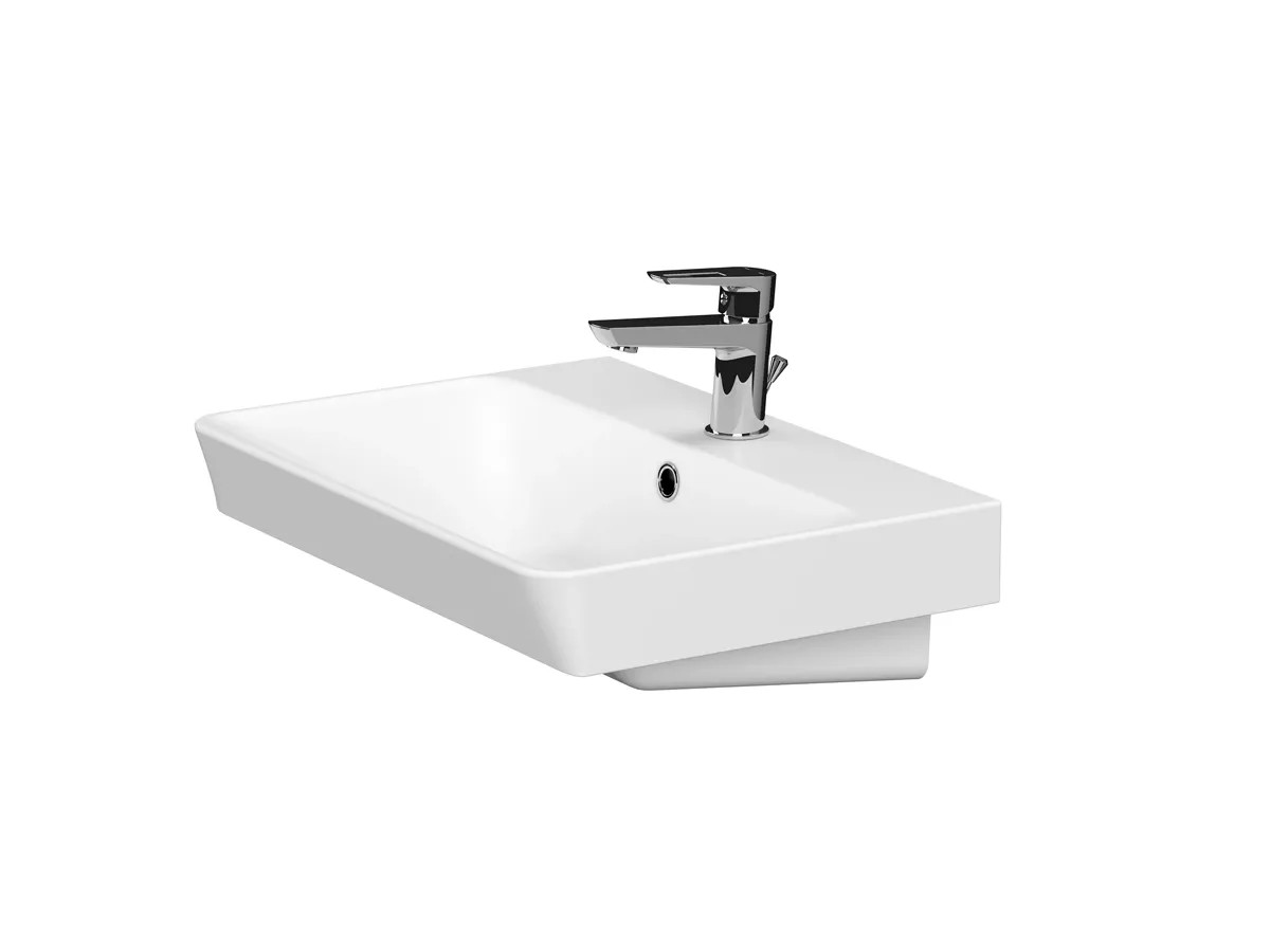 A Cersanit Mille 56 cm-es kerámiamosdó szögletes formájú mosdó, keskeny ferde elülső peremének köszönhetően kevesebb helyet foglal, mint az ovális hagyományos fali mosdók. Dekorativ króm szifonnal szép, tökéletes, modern kompoziciót alkot. Központi csaplyukkal és túlfolyónyílással rendelkezik.