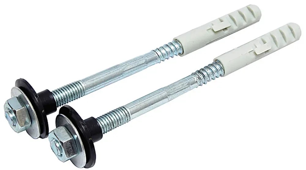 A praktikus mosdópultrögzítés 2 horganyzott felfüggesztő csavart tartalmaz megfelelő anyákkal és alátétekkel. A két excentrikus peremes hüvely biztosítja a mosdópult magasságkiegyenlítését. Ezenkívül a csomag két megfelelő tiplit is tartalmaz.