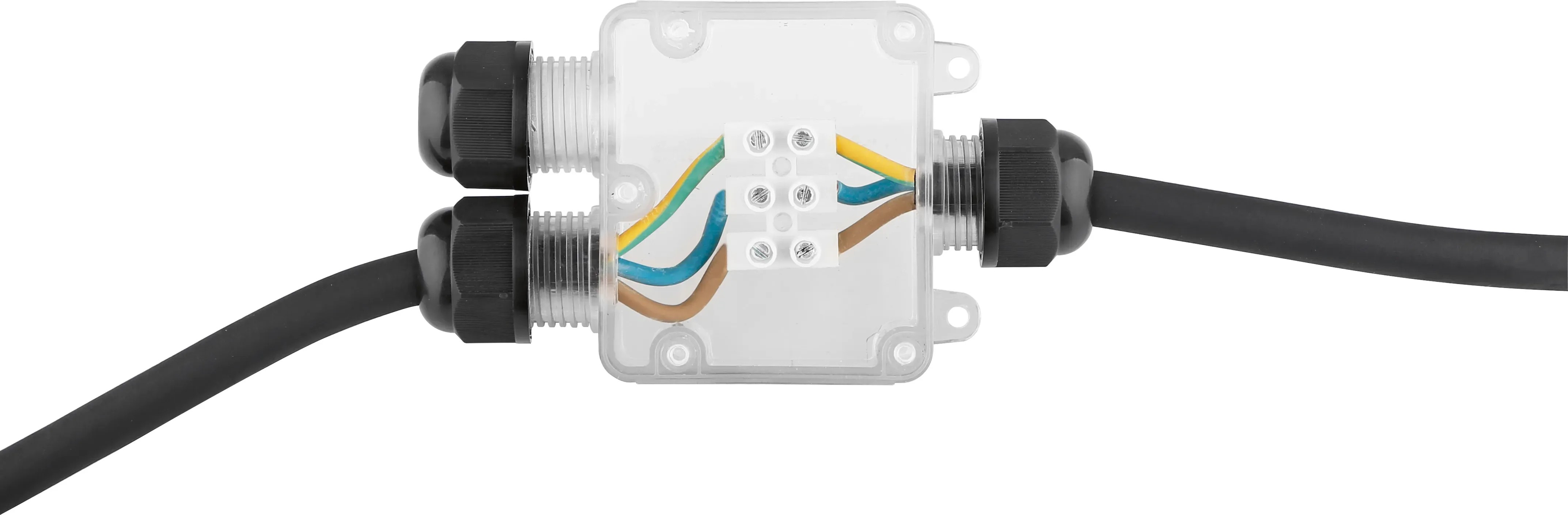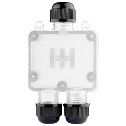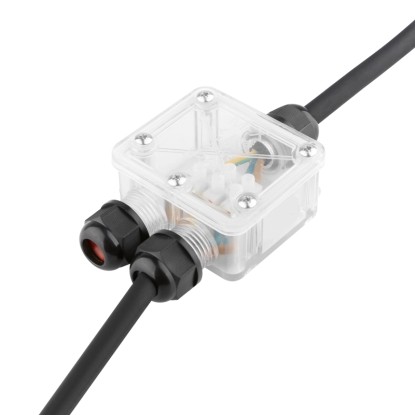 Az átlátszó-fekete csatlakozó a legkülönfélébb kültéri alkalmazásokhoz ideális. Akár a kertben, építkezésen vagy más igényes környezetben, biztonságos és tartós megoldást kínál az elektromos csatlakozásokhoz.