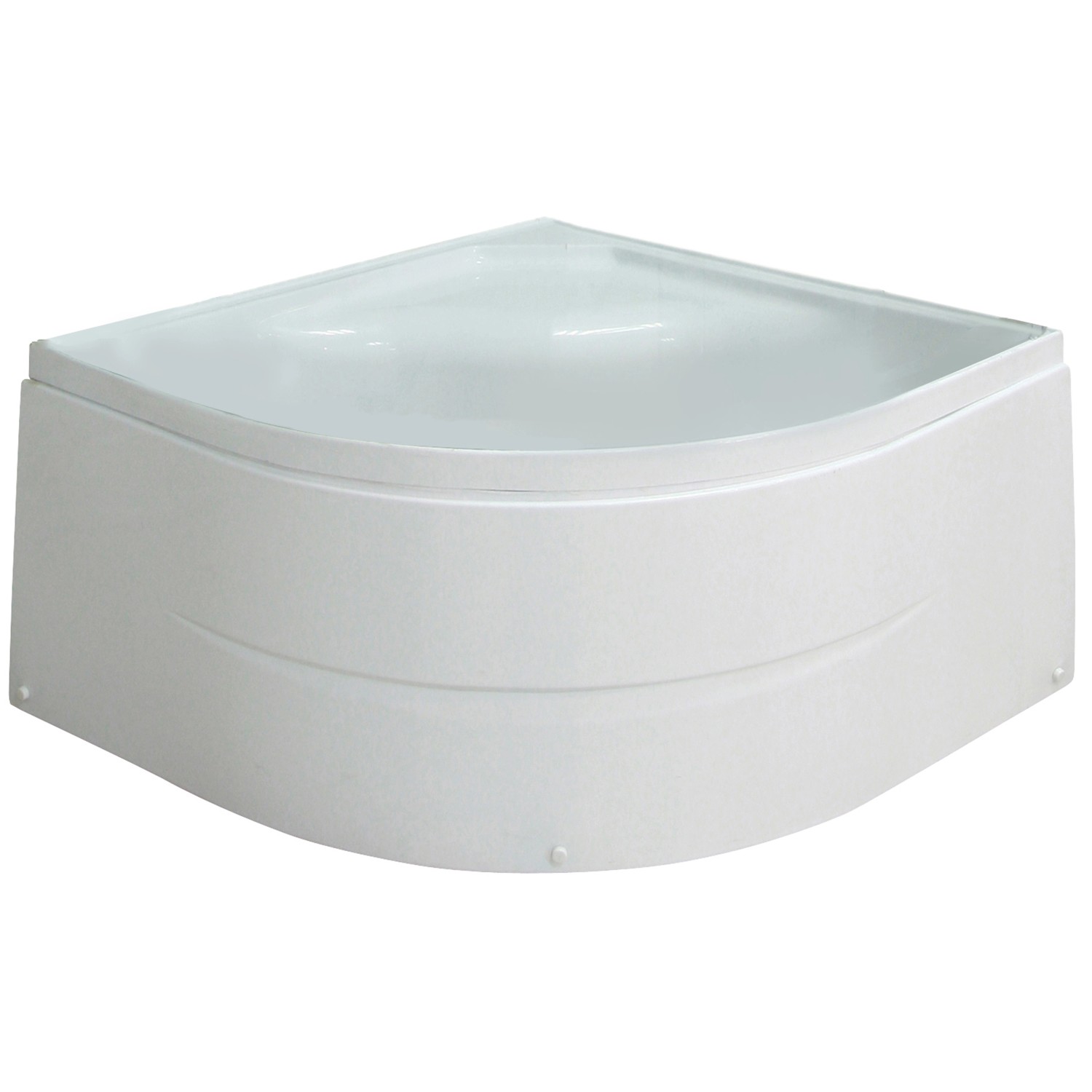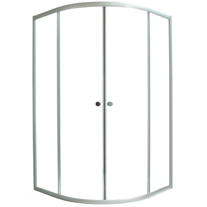 Íves sarokkabin 2 tolóajtóval, 5 mm-es biztonsági üveggel és fehér profillal, ülőtálcával, 90 cm x 90 cm x 203 cm.