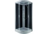 A zuhanykabin két 4 mm-es, egyrétegű biztonsági üvegből készült tolóajtóból, egy fekete üveg hátfalból és alumínium megjelenésű profilokból áll. A praktikus fejzuhannyal (15 cm átmérő) kellemes felülről esőzuhany érkezik. A kézi zuhany rugalmasan használható és három különböző zuhanysugárával kellemes zuhanyzási élményt nyújt. A hátsó falban lévő hat masszázsfúvóka maximális ellazulást biztosít. A beépített zuhanycsaptelep segítségével válthat a különböző típusú zuhanysugarak között, és vezérelheti a masszázsfunkciót.