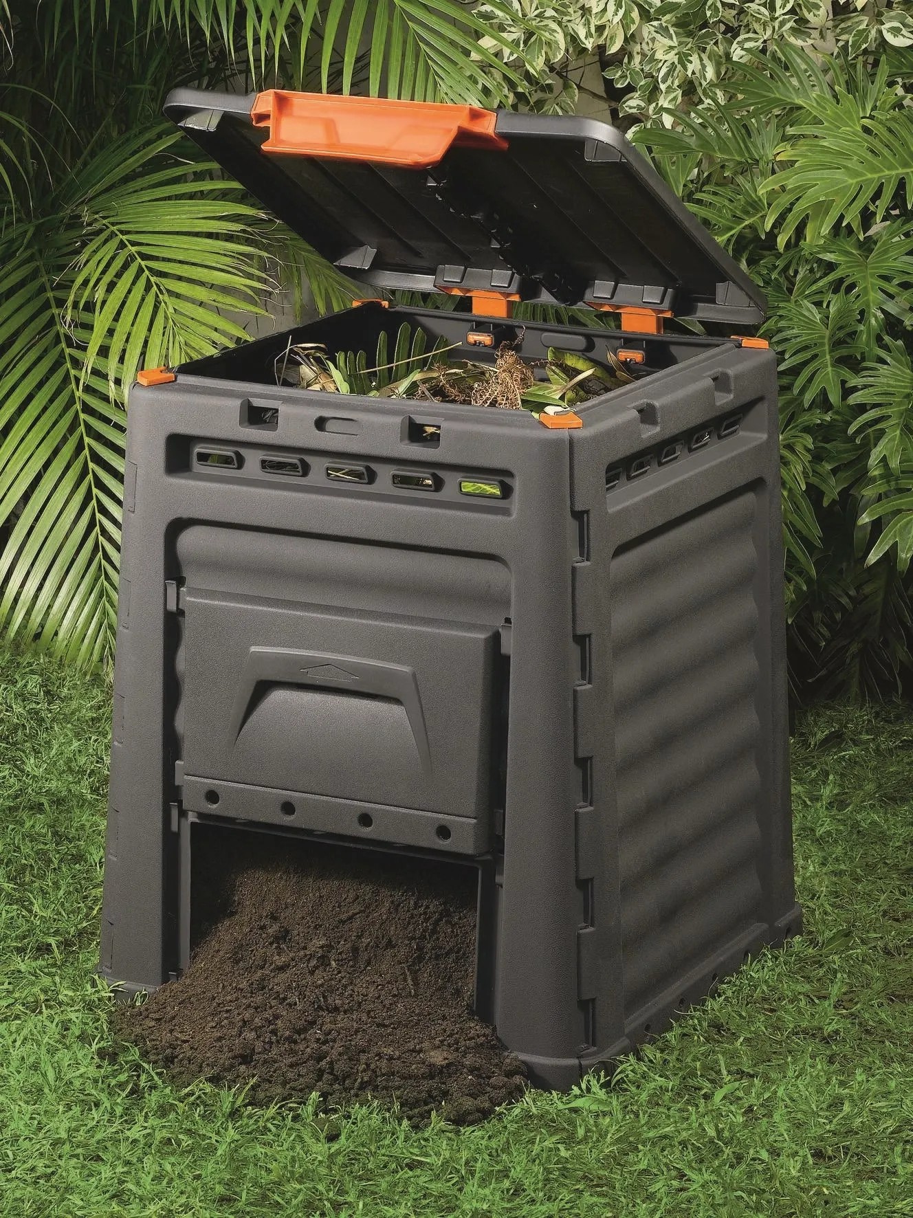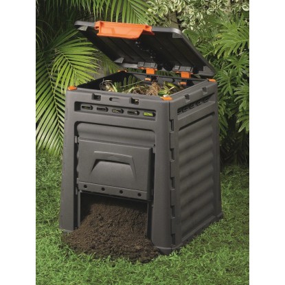 Az Eco-Composter 320 l űrtartalmú komposztáló alkalmazása kiváló megoldást jelent a háztartási és kerti hulladékok trágyává alakításához. A falcsatlakozások speciális rendszere és a stabil szerkezet megkérdőjelezhetetlenül a komposztáló legfőbb előnyei közé tartoznak.