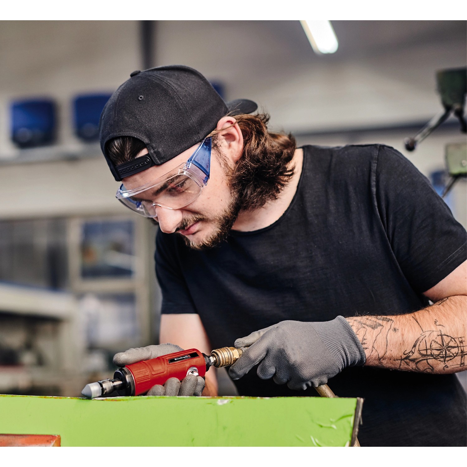 Az Einhell egyenes csiszolója a legjobb teljesítményét 9 mm-es belső tömlőátmérőnél éri el. A gumírozott fogantyú kényelmes és biztonságos munkavégzést tesz lehetővé. Az egykezes kezelésre optimalizált kialakításnak köszönhetően a pneumatikus egyenes csiszoló rendkívül felhasználóbarát. A biztonsági lehúzókar megakadályozza a véletlen indítást.