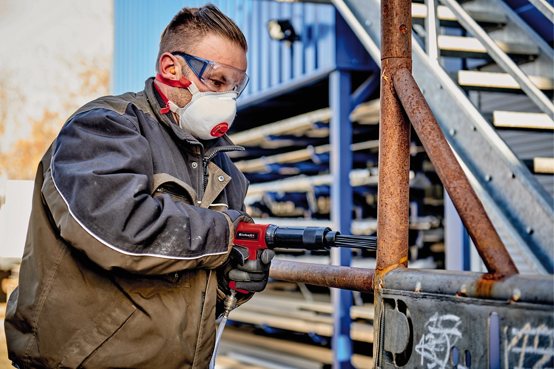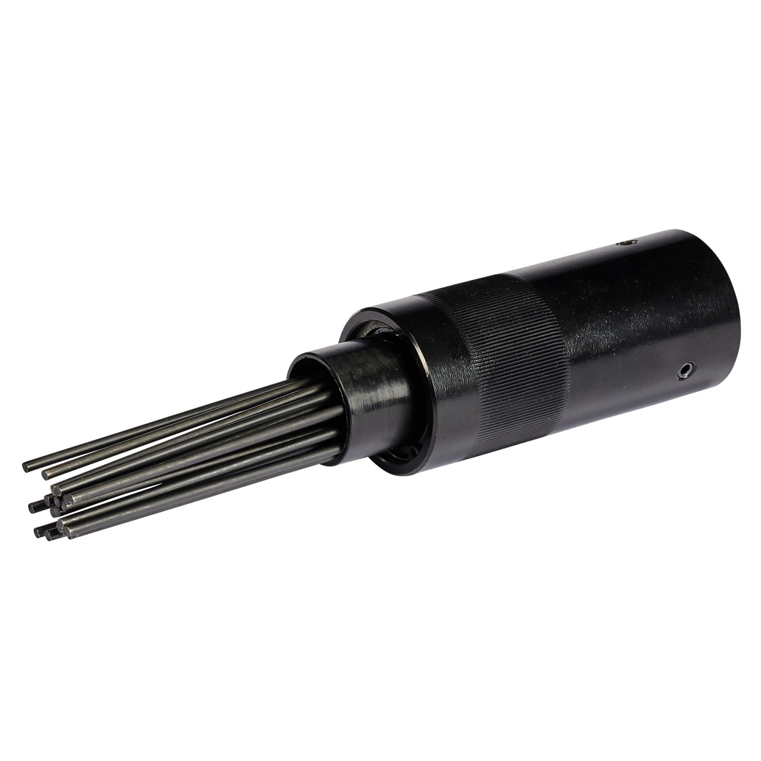 Az Einhell tű rozsdamentesítő tartozék az Einhell TC-PC 45 pneumatikus vésőkalapáccsal használható. A kereskedelemben kapható kompresszorral végzett sűrített levegős munkák bővíthetők vele. Ez a praktikus segítőtárs a ház körüli és a kertben végzett felújítási- és bontási munkákban nyújt segítséget a fémeken vagy köveken végzett különféle tisztítási munkákban. Az autókhoz is használható a festék, a lakk vagy a rozsda eltávolítására a felniről és a karosszériáról. A robusztus fémtűk megbízhatóan távolítják el a szennyeződéseket és a rozsdát a kőről vagy fémről. A menetnek köszönhetően a tűfej könnyen rácsavarható a vésőkalapács hengerére.