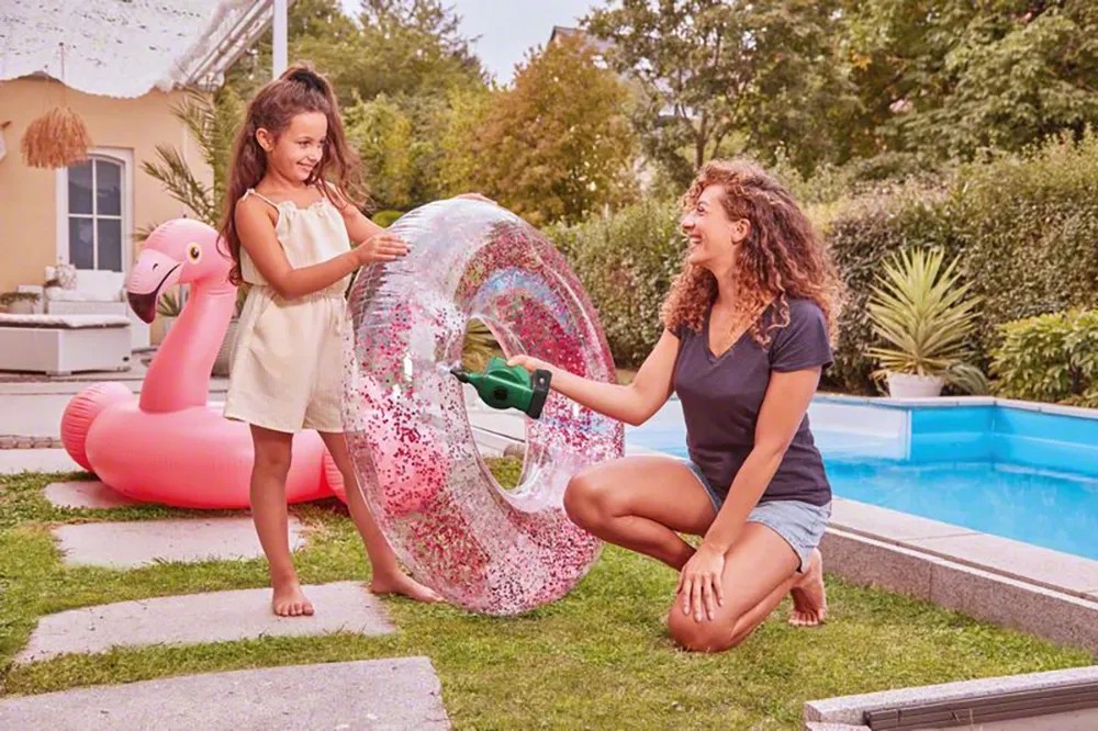 Az EasyInflate 18V-500 nagyteljesítményű pumpa megkönnyíti az életet a nagyméretű szabadidős tárgyak felfújásakor.