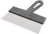A praktikus LUX-TOOLS simítókéssel könnyedén és gyorsan végezheti el homlokzatok és egyéb nagyobb felületek vakolását. A munkavégzés során gipszvakolat is használható. A falakon található tapéták lekaparása is gyorsan elvégezhető, köszönhetően a széles pengének. A kényelmes használat érdekében a 205 mm hosszú homlokzatspatulya műanyagból készült, bordázott markolattal rendelkezik. Praktikus, integrált akasztó furattal látták el. A 200 mm szélességű laphoz kiváló minőségű és rozsdamentes nemesacélt használtak. Ráadásul ez az anyag stabilitásával is kitűnik.