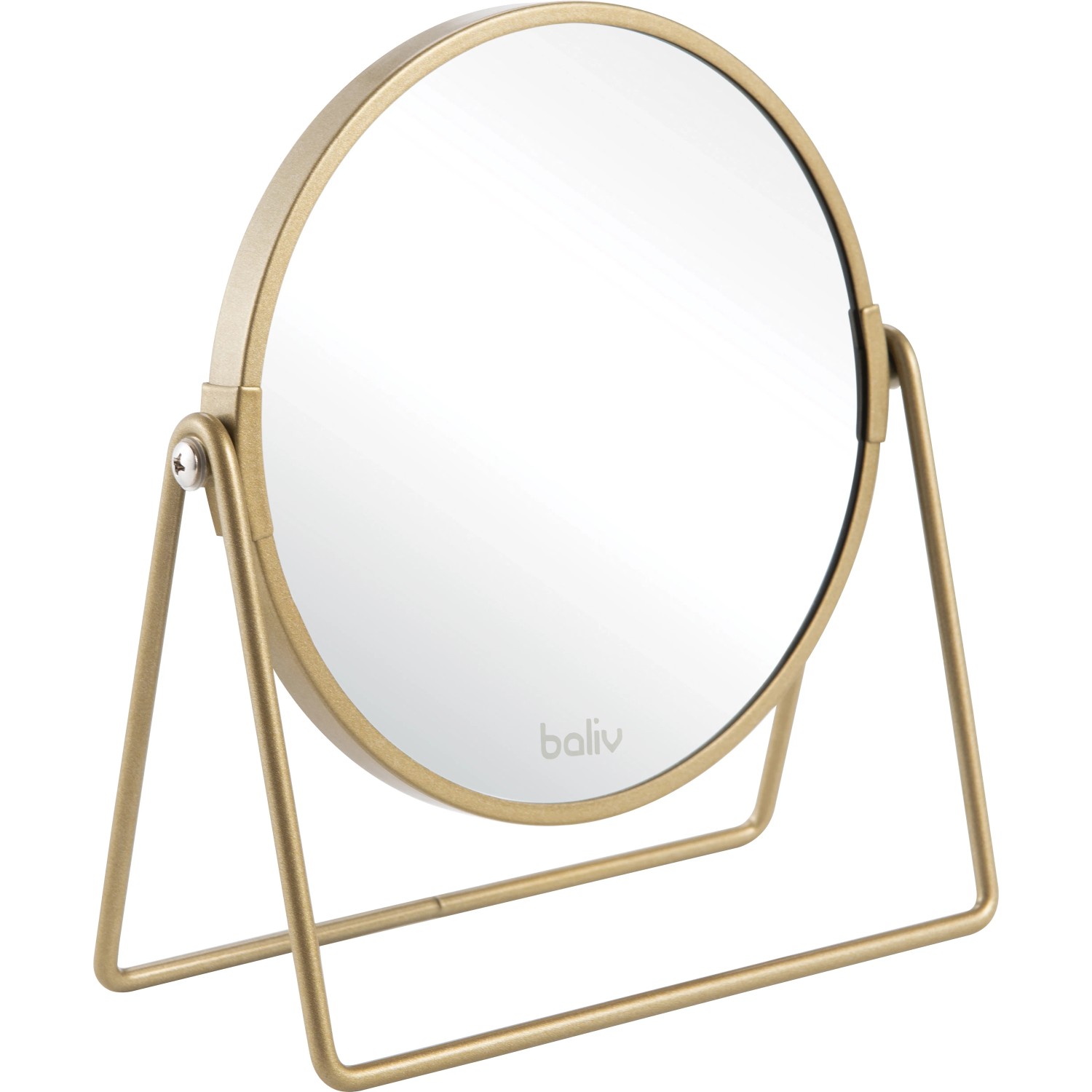 A kozmetikai tükör aranyszínű keretével igazi különlegesség lesz. A tükör megdönthető, hogy optimálisan tükrözze a fényt, és a legjobb perspektívát kapjad a sminkeléshez. Fémszerkezetének köszönhetően a sminktükör hosszú ideig fog örömet okozni. Ráérzett az ízére? Ebben a stílusban további klassz fürdőszobai kiegészítőink is vannak a számodra: Hogy a kiegészítők harmonizáljanak egymással. A praktikus lábnak köszönhetően a sminktükröt rugalmasan elhelyezheted - akár a sminkasztalon vagy a fürdőszobai komódon is.