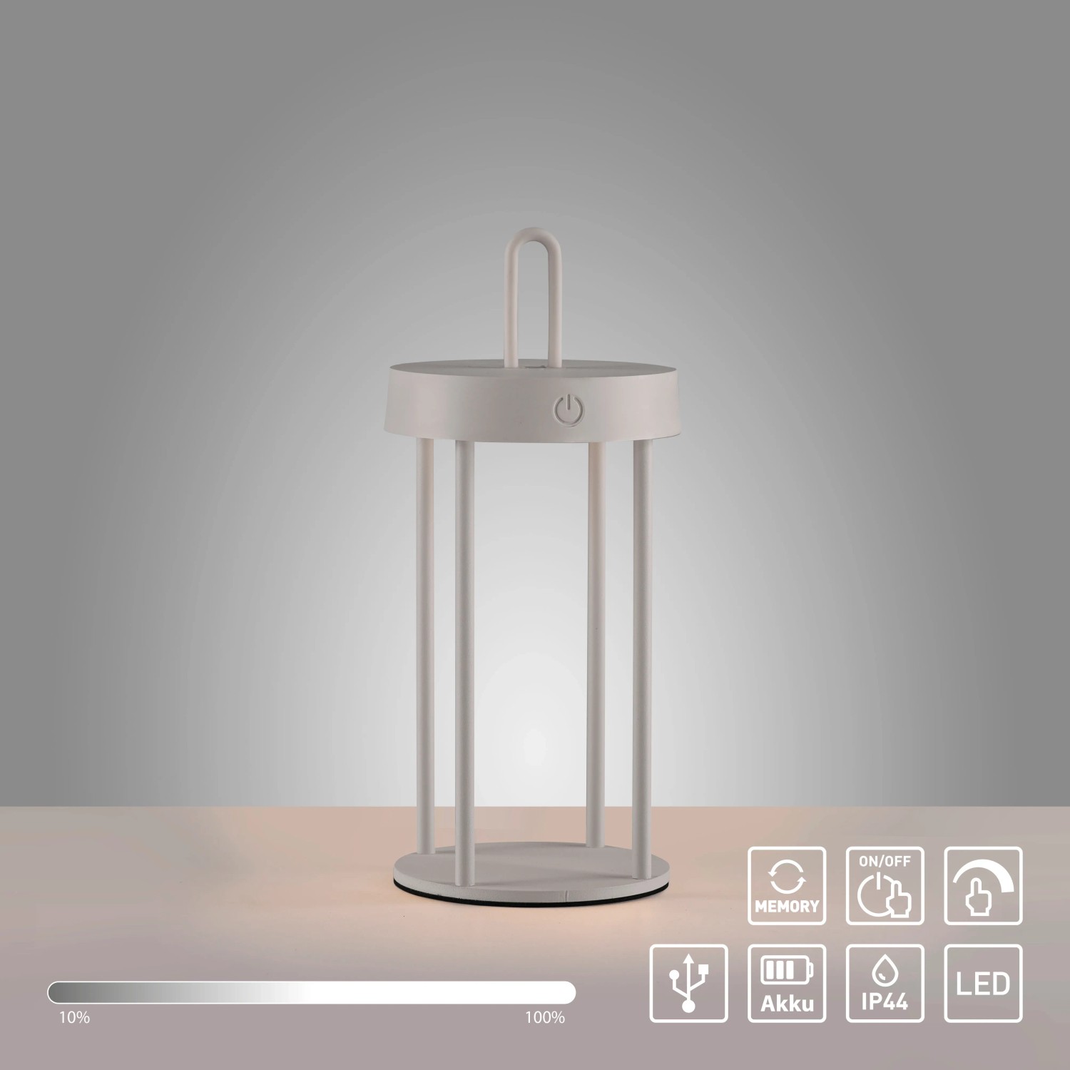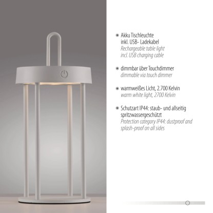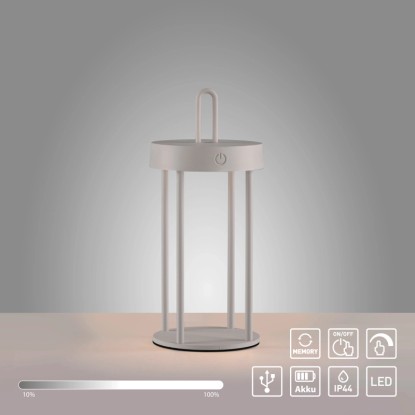 Teremtsen rugalmas és mobil trendeket az elegáns grézs színű Anselm akkumulátoros asztali LED-es lámpával. Ez az IP44 védettséggel rendelkező sokoldalú asztali lámpa bel- és kültéri használatra egyaránt ideális, és gyorsan megtalálja dekoratív helyét a ház körül és a kertben.