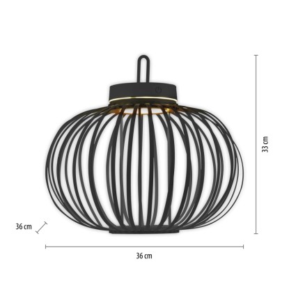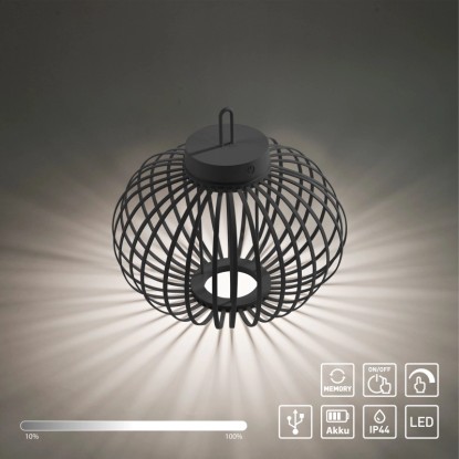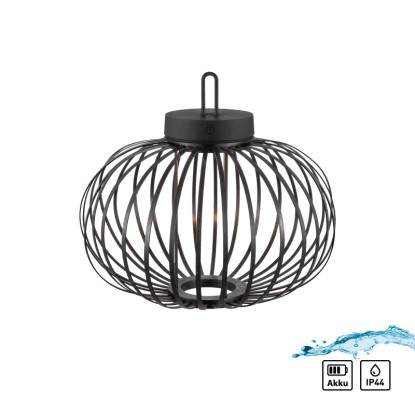 Just Light akkumulátoros LED-es függőlámpa Akuba fekete 33 cm x 36 cm átmérő