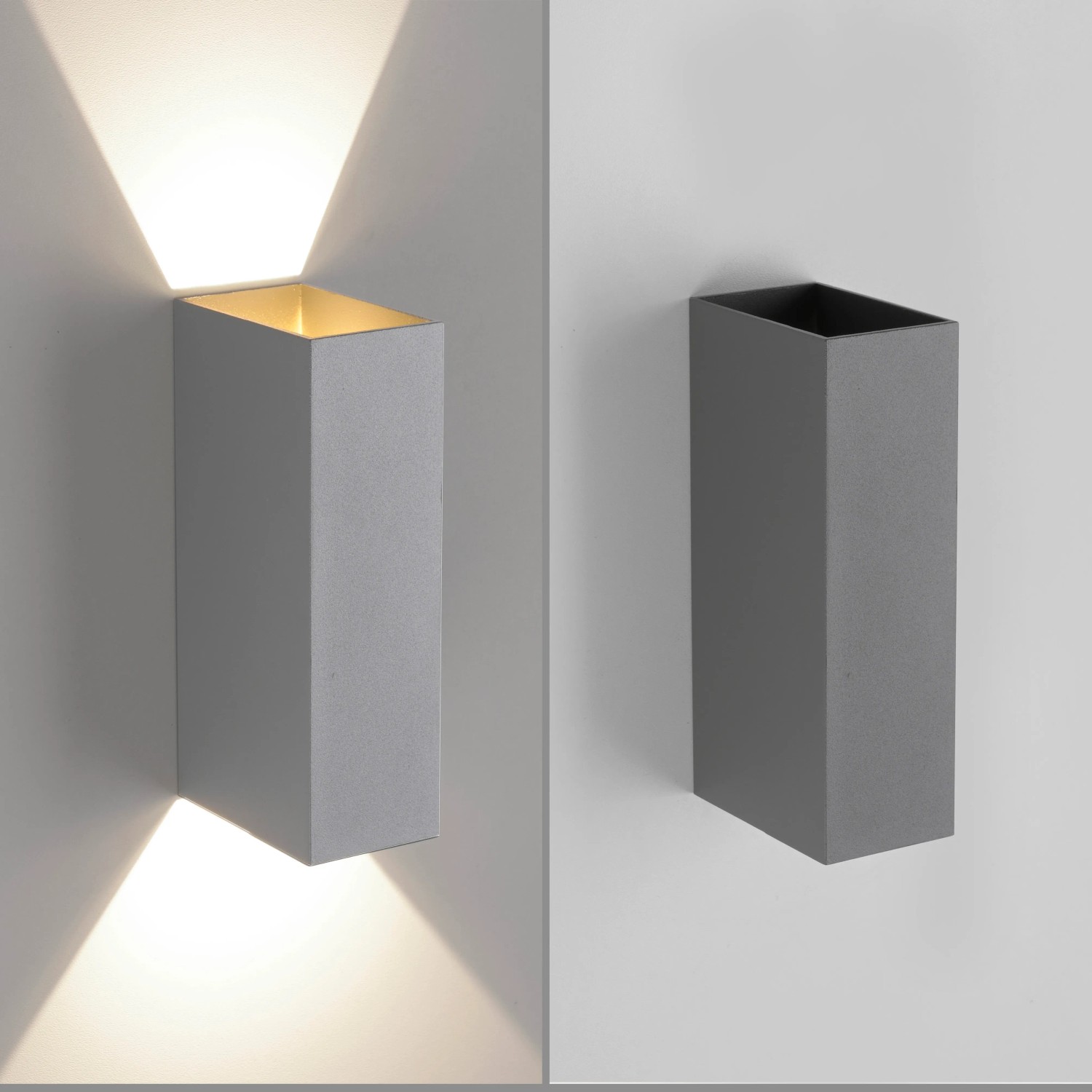 A Block falilámpa kúp alakban sugározza a fényt felfelé és lefelé, így kellemes légkört teremt. A falilámpa modern szürke színe bármilyen kortárs kültéri térbe illik, például a házfalba, az erkélyre vagy a teraszra.