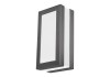 Modern megjelenésű kültéri fali lámpa 1 db foglalattal, UV sugárzásnak ellenálló kivitelben, IP44-es, azaz fröccsenő víz elleni védettséggel. 12,5 cm széles és 25 cm magas, antracit szürke színű fémből és fehér színű műanyagból készített lámpatest E27-es foglalatú, max. 14 W teljesítményű energiatakarékos fényforrást fogad. A lámpatest hagyományos fényforrással nem működtethető!