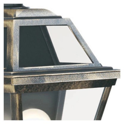 Ez a klasszikus megjelenésű, vonzó kültéri fali konzol a hagyományos stílusú otthonok befejező eleme lesz. A rusztikus kivitel fekete aranyból áll, és 4 oldalról tiszta üveg veszi körül. Ideális a kerti falakon való megjelenítéshez, miközben élvezheti az al fresco étkezést. Ez az elem IP44-es besorolású és teljesen fröccsenésálló, hogy megvédje az elemektől.