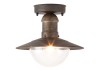 Rusztikus megjelenésű kültéri mennyezeti lámpa 1 db foglalattal, UV sugárzásnak ellenálló kivitelben, IP44-es, azaz fröccsenő víz elleni védettséggel. 21.5 cm magas, 24 cm átmérőjű, antik arany színű, fémből készített lámpatest áttetsző műanyag búrával. A lámpatest E27-es foglalatkialakítású, max. 60W teljesítményű fényforrással használható.