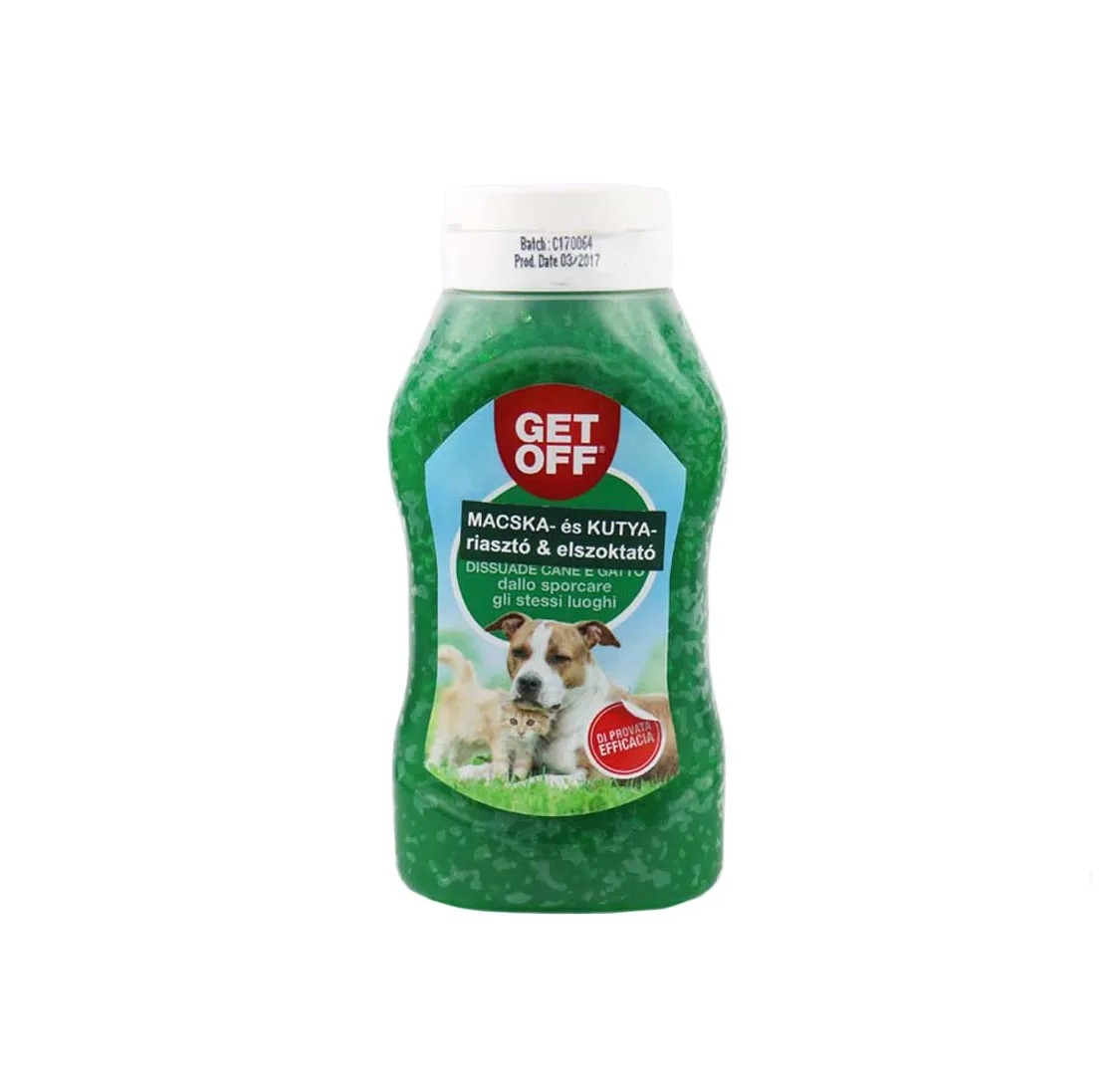 A zselé kristályok laza elterítésével hatásos eredményt érhetünk el mindenféle időjárási körülmények között, a szer ugyanis fokozatosan bocsájt ki egy erős illatot, amely megtéveszti a kutyák és a macskák szaglását. A szert használhatjuk töményen a kövezeten, a pázsit körül vagy a virágágyásokban.