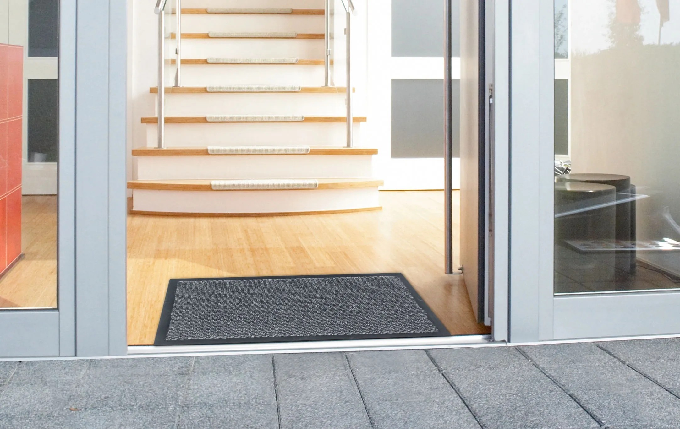 Saphir lábtörlőnk négy színben kapható. Felszedi a finom szennyeződéseket, és felszívja a nedvességet. A Saphir vinyl hátoldala biztosítja a csúszásmentességet. Méteráruk esetén a vágott élek konfekcionálása lehetséges.